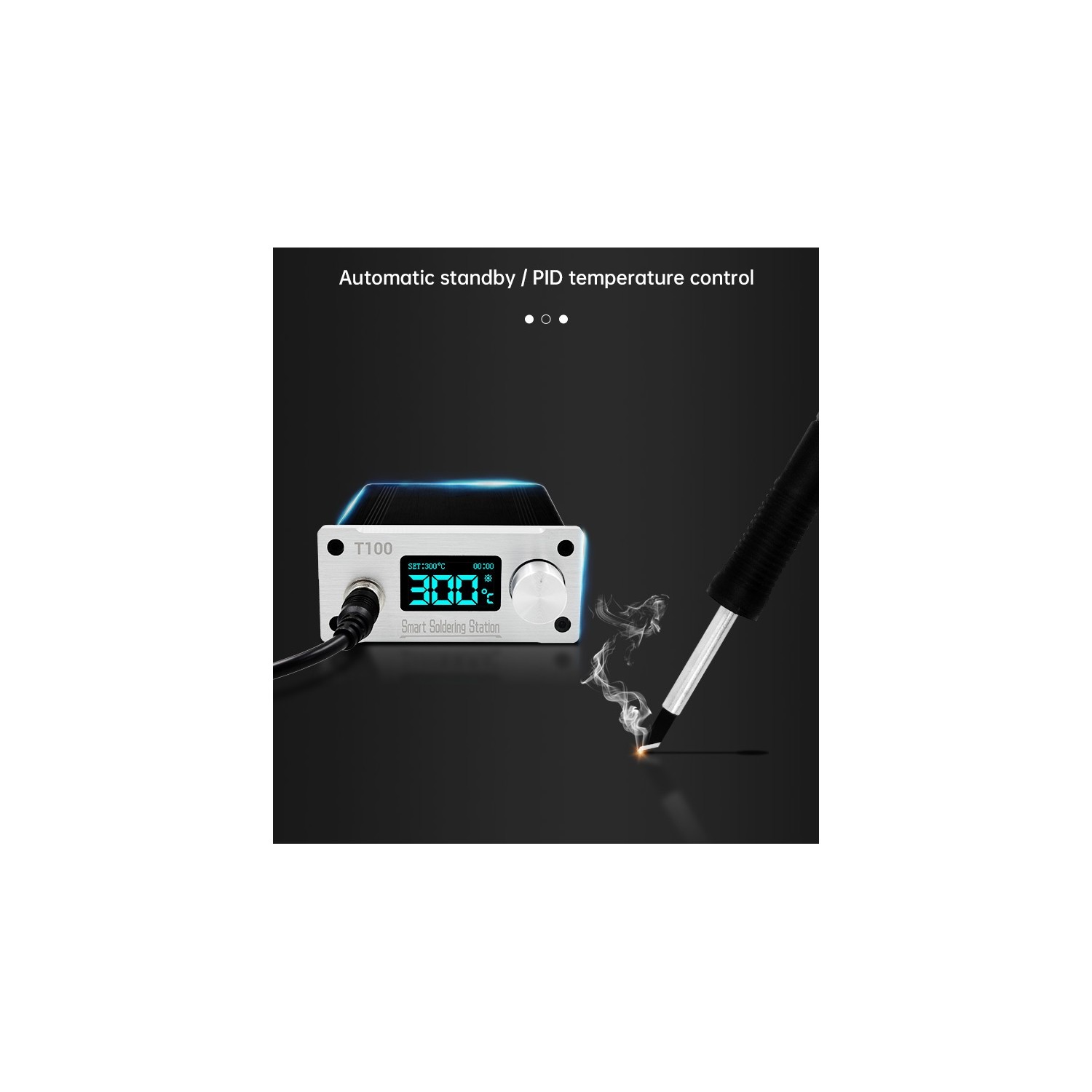Alientek T100 to kompaktowa, sterowana cyfrowo stacja lutownicza przeznaczona doprofesjonalnego montażu i naprawy elektroniki. Wyposażona w wewnętrzną moc do 108 W, wysokowydajny system grotów T12 i inteligentne zarządzanie energią, T100 zapewnia szybkie nagrzewanie, doskonałą stabilność temperatury i przenośną wszechstronność dzięki opcjom wejścia AC i PD / QC typu C.