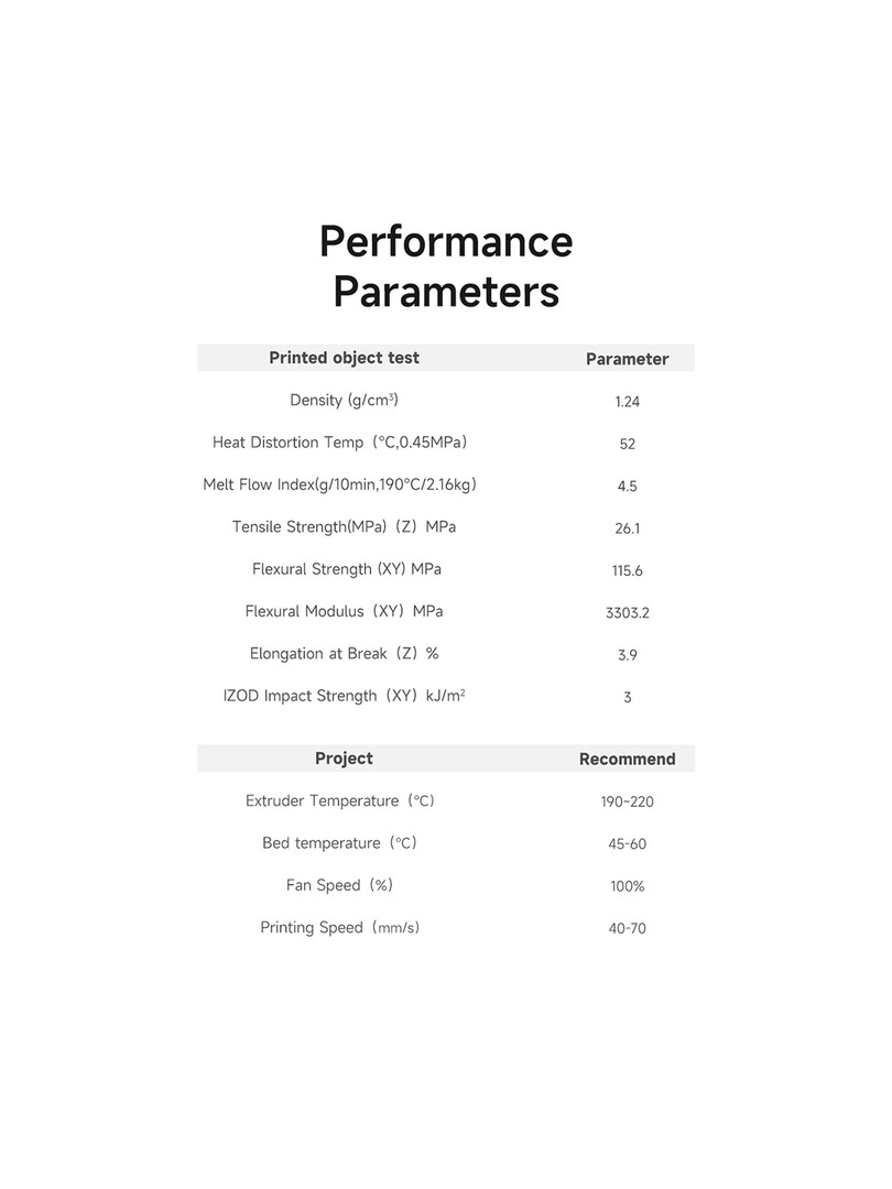 Minimalna tolerancja i niskie wypaczenie zapewniają spójne podawanie i stabilne wydruki, dobre wiązanie warstw, mniej sznurków, brak pęcherzyków powietrza i łatwą obsługę, co skutkuje wyjątkowym wykończeniem powierzchni, które jest bardzo precyzyjne.