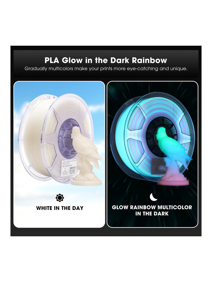 eSUN PLA Luminous to świecący filament oparty na zmodyfikowanym PLA. Efekt świetlny materiału sprawia, że jest to idealny wybór do specjalnych wydruków, takich jak przedmioty dekoracyjne lub zabawki.