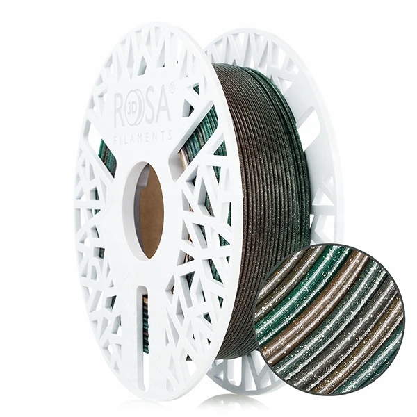 PLA Galaxy Rainbow 1,75mm Terra 0,5kg to materiał do druku 3D na bazie PLA (polilaktyd) wypełniony drobinkami srebrnego brokatu oraz oferujący łagodne przejścia kolorystyczne. To wytrzymały i łatwy w użyciu filament, idealny dla osób rozpoczynających swoją przygodę z drukiem 3D. Pełny cykl kolorystyczny wynosi 150g.Seria PLA Galaxy Rainbow to materiały do druku 3D opracowane na bazie popularnego PLA wzbogacone o dodatek błyszczących drobinek brokatu. Ten łatwy w użyciu materiał do druku 3D zmniejsza widoczność warstw, jednocześnie zwiększając atrakcyjność wizualną Twoich projektów. Idealny dla początkujących entuzjastów druku 3D oraz profesjonalistów, filament 3D PLA Galaxy Rainbow można drukować na tych samych ustawieniach co PLA Starter. Nie wykazuje właściwości ściernych dyszy drukarki 3D - nie wymaga stosowania dysz ze stali hartowanej.