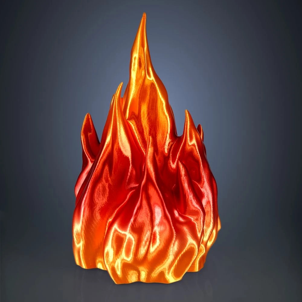 Filament PLA Rainbow Silk Fire firmy Rosa3D pozwala przygotować wydruki 3D o niepowtarzalnej, ognistej kolorystyce. Każda szpula zawiera wielobarwną żyłkę w ognistych odcieniach: głębokiej czerwieni, świetlistej pomarańczy, żółci i złocistych tonów. Co