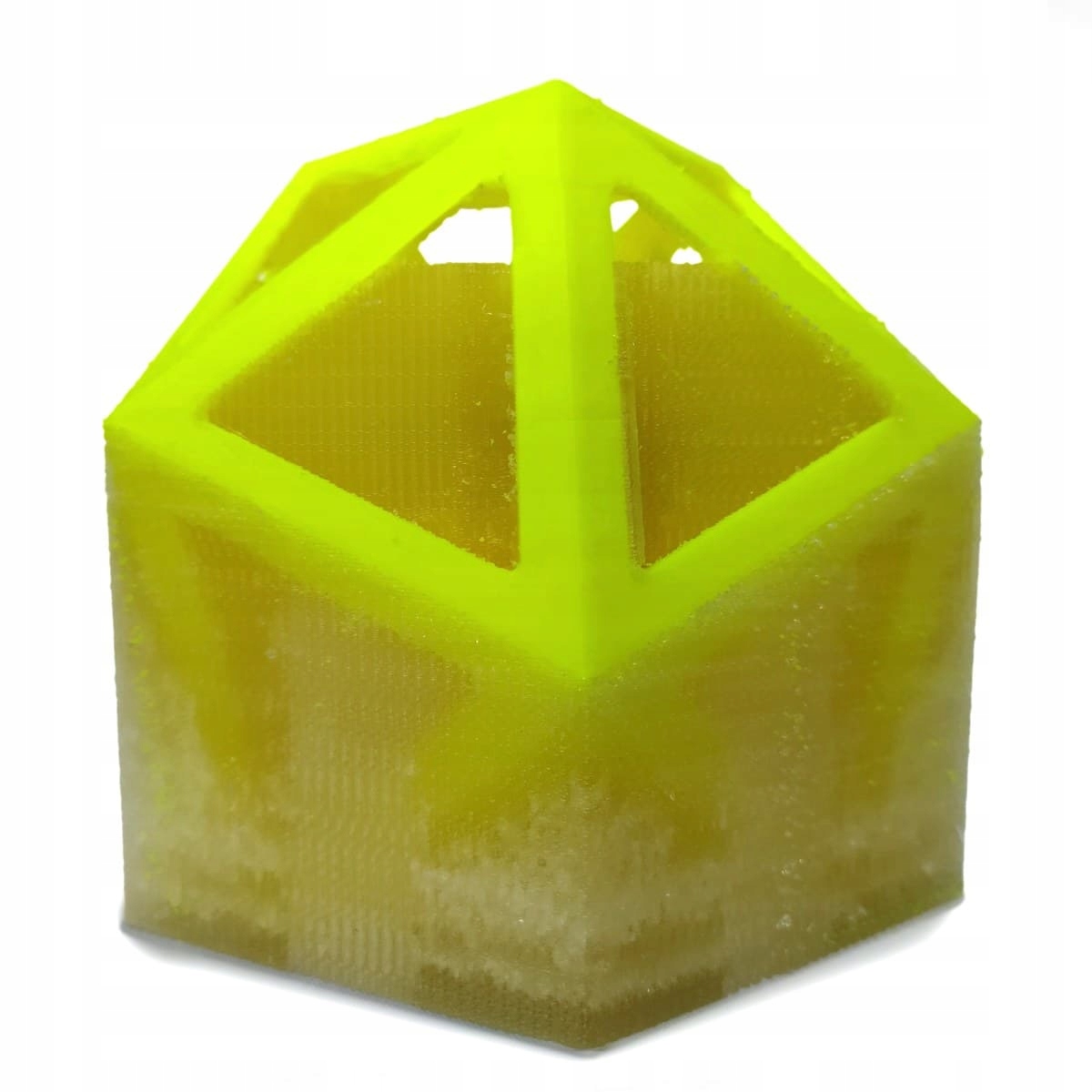 Filament PVA, czyli poli(alkohol winylowy) jest termoplastem rozpuszczalnym w wodzie. Z tego powodu świetnie sprawdzi się jako materiał podporowy w skomplikowanych wydrukach z innych tworzyw (np. PLA, PET-G, TPU, PA).Ulepszona wersja - PVA-2 - charakteryzuje się wyższą odpornością temperaturową dzięki czemu doskonale sprawdzi się w roli materiału podporowego podczas wydruku z materiałów do zastosowań technicznych. Filament PVA-2 może być stosowany w aktywnie grzanej komorze w temperaturze wynoszącej maksymalnie 70°C.Stosując filament 3D PVA na dwugłowicowej drukarce, można w jednym podejściu wydrukować modele, które w innym przypadku wymagałyby drukowania w częściach, klejenia lub nie byłyby wcale możliwe do wykonania!Po zakończonym druku wystarczy zanurzyć model w ciepłej wodzie (jednak nie przekraczającej temperatury odkształcenia cieplnego filamentu, z którego wykonana jest właściwa część wydruku). W zależności od wymiarów modelu i ilości zużytego PVA, taka kąpiel może potrwać od kilkunastu minut do kilku godzin. Mieszanie wody w zbiorniku może przyspieszyć proces rozpuszczania podpór.PVA drukuje się w niskich temperaturach, w otwartej drukarce i niepodgrzewanym stole. Ze względu na silną higroskopijność trzeba przechowywać filament w szczelnie zamkniętej torebce lub pojemniku z pochłaniaczem wilgoci. Przechowywanie PVA z dala od promieni słonecznych i w temperaturze między 15°C a 25°C przedłuży jego żywotność.