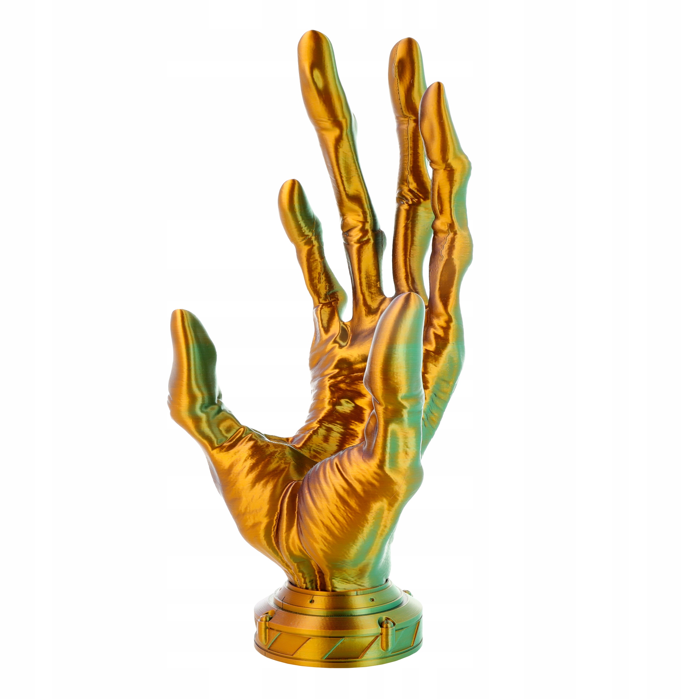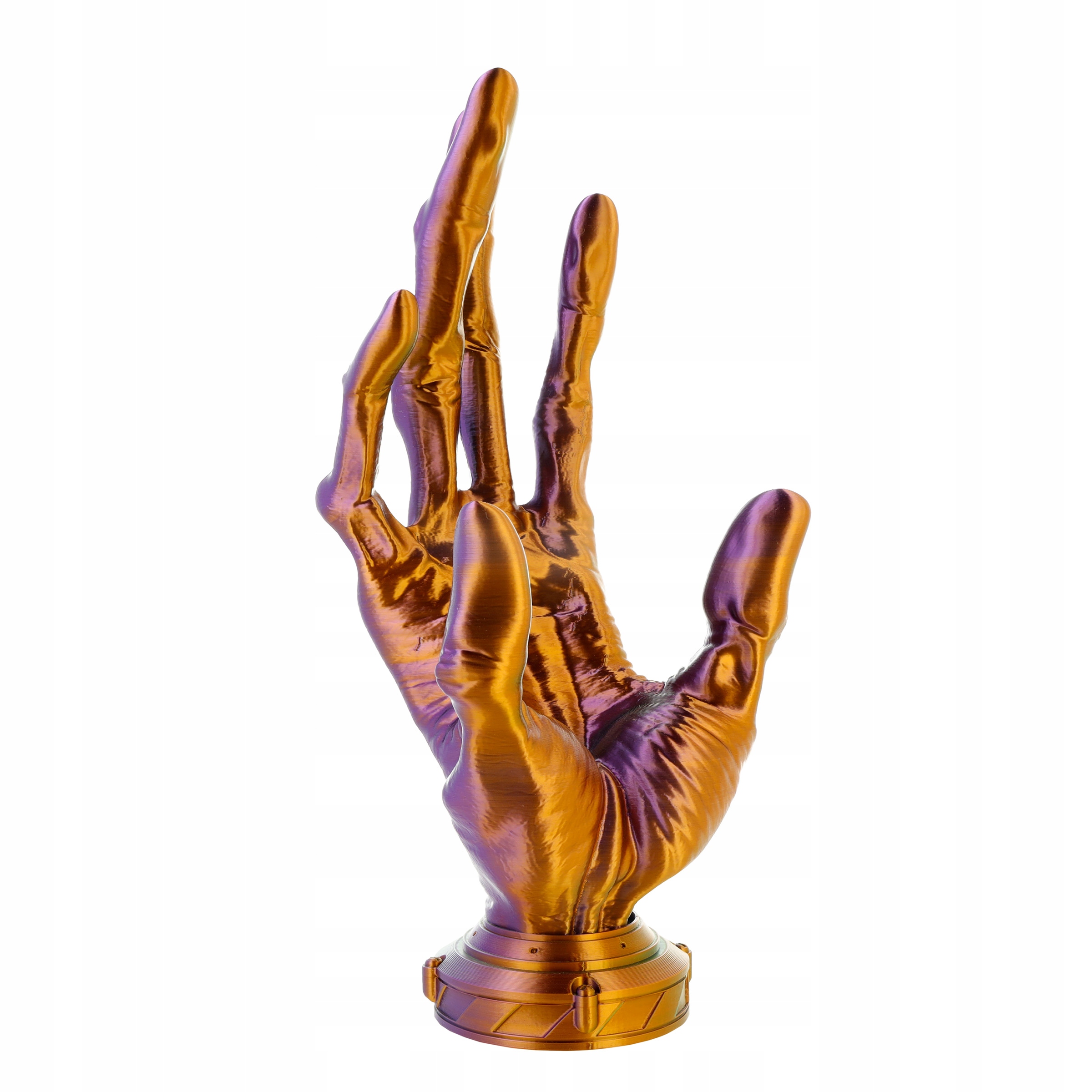 FILAMENT 3D PLA Magic Silk Cameleon to materiał do druku 3D oparty na PLA-Silk, łączący trzy kolory (pomarańczowy, fioletowy i zielony) w jednej nitce dzięki koekstruzji. Tworzy „magiczne” efekty wizualne, szczególnie przy złożonych modelach z detalami. Drukuje się na ustawieniach PLA Starter, bez potrzeby zmniejszania prędkości. Filament ma niski skurcz, brak zapachu, świetną adhezję warstw i doskonałe odwzorowanie detali. Do korzystania z filamentów typu ReFill konieczne jest zamontowanie Masterpool ROSA3D, dostępne w naszym sklepie.Podane parametry drukowania służą jedynie jako wytyczne i powinny być dostosowane do specyfikacji drukarki 3D oraz warunków otoczenia. Zalecamy przeprowadzenie własnych testów w celu kalibracji optymalnych ustawień dla konkretnego modelu i materiału.