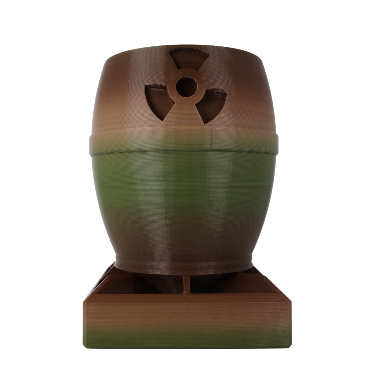 Filament PLA Rainbow Army Forest firmy Rosa3D pozwala przygotować wydruki 3D o niepowtarzalnej kolorystyce, militarnej kolorystyce. Każda szpula zawiera wielobarwną żyłkę w intensywnych odcieniach khaki, oliwkowej zieleni oraz brązu tworząc wyjątkowy gradient. Jedna szpula o wadze 1000g netto mieści w sobie 5 cykli przejść kolorów. W 200 g filamentu mieści się jeden cykl kolorystyczny. W zależności od dobranych parametrów druku (wielkość wydruku i gęstość wypełnienia), możesz zawrzeć w swoim modelu tyle kolorów, ile chcesz. PLA Rainbow Army Forest nie wymaga drukowania w zamkniętej komorze, wysokich temperatur ekstruzji, czy zmniejszania prędkości druku, dlatego można je stosować nawet na najprostszych urządzeniach. Ten filament charakteryzuje się niskim skurczem oraz pozbawiony jest specyficznego zapachu. Wydruki z PLA Rainbow Army Forest cechują się świetną adhezją międzywarstwową oraz bardzo dobrym odwzorowaniem szczegółów. UWAGA! Częstotliwość oraz kolejność przechodzenia kolorów jest ustalona dla danej serii produkcyjnej. W związku z tym, pojedyncza szpula może rozpocząć się od dowolnego punktu procesu. Dopuszczalne są różnice w odcieniach.