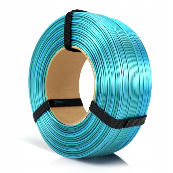 Filament PLA Rainbow Silk Ocean firmy Rosa3D pozwala przygotować wydruki 3D o niepowtarzalnej kolorystyce. Każda szpula zawiera wielobarwną żyłkę w odcieniach wód oceanów: głębokiego błękitu, świetlistego niebieskiego, granatu, stalowego, turkusowego, morskiej zieleni, jasnej zieleni i lazurowych tonów. Co