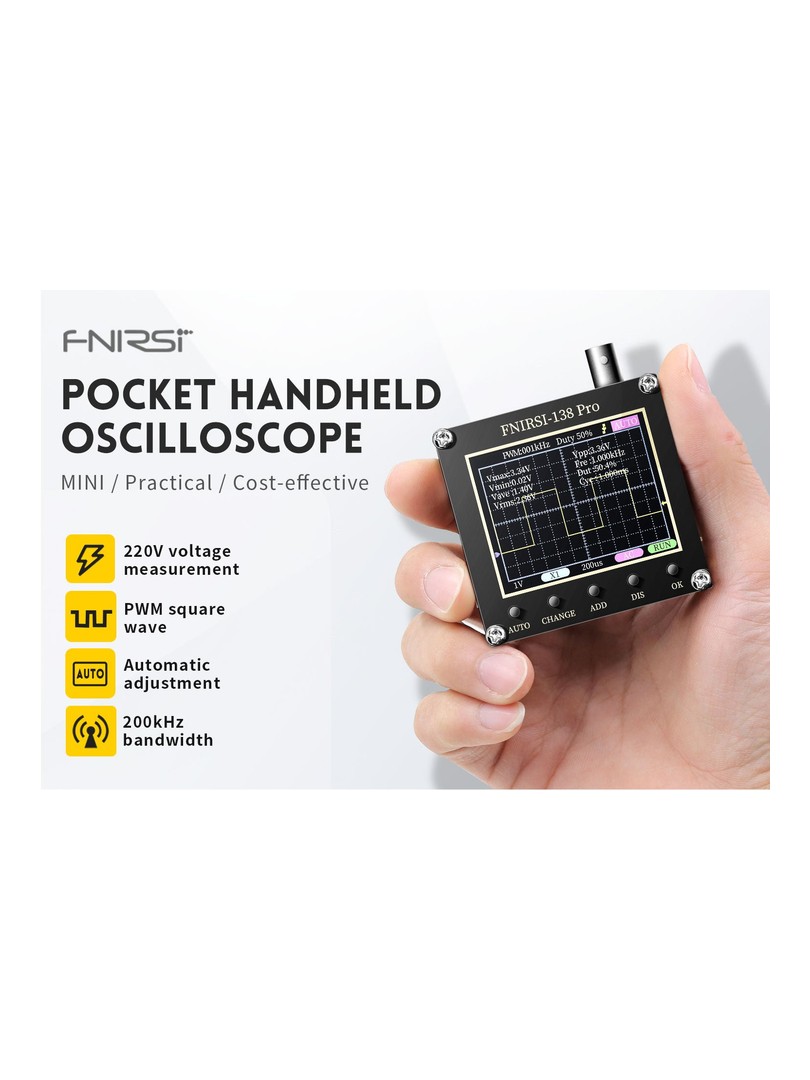 Ręczny oscyloskop cyfrowyFNIRSI 138 PRO to wysoce praktyczny i ekonomiczny ręczny oscyloskop MINI wprowadzony na rynek przez firmę FNIRSI, który jest przeznaczony dla branży utrzymania ruchu oraz branży edukacyjnej R&D.