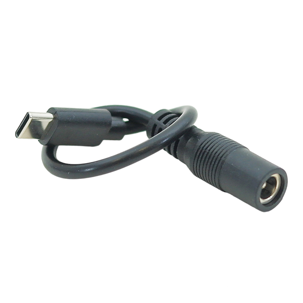 Kabel adaptera DC5525 do USB Type-C łączy urządzenia ze złączem zasilania USB Type-C z zasilaczem DC5525 (5,5 na 2,5 mm). Kabel ma żeńskie złącze wejściowe 5,5x2,5 mm do podłączenia do zasilacza, a Type-C łączy się z urządzeniem, takim jak lutownica Fnirsi HS-01. Całkowita długość około 17 cm (przewód 15 cm). Kabel bez wyzwalacza, napięcie wyjściowe równe wejściowemu.