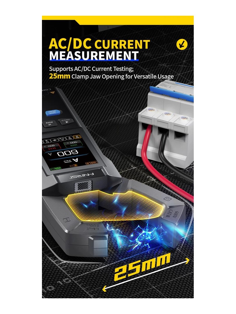 Inteligentny miernik cęgowy o wysokiej precyzji FNIRSI DMC-100 to nowoczesne narzędzie do dokładnych pomiarów o rozszerzonej funkcjonalności. Urządzenie umożliwia pomiar prądu stałego i zmiennego do 600A, napięcia stałego do 1000V, napięcia zmiennego do 750V, rezystancji do 100MΩ i pojemności do 100mF.