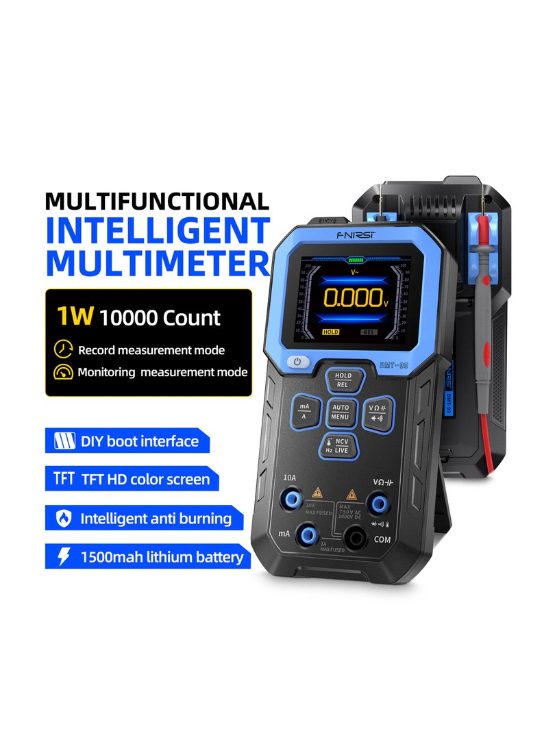 DMT-99 to nowo wprowadzony na rynek inteligentny multimetr cyfrowy firmy FNIRSI o pojemności 10 000 punktów, charakteryzujący się szerszym zakresem pomiarowym i wyższą rozdzielczością, umożliwiając dokładniejszy pomiar wartości. Nadaje się do różnych dziedzin konserwacji elektroniki, takich jak inżynieria, laboratoria, motoryzacja i sprzęt AGD. Wyposażony w 2,4-calowy, kolorowy wyświetlacz TFT o rozdzielczości do 240 x 320 pikseli, nowy interfejs użytkownika i pionierską funkcję trybu monitorowania, zwiększa komfort użytkowania i ułatwia pracę w różnych sytuacjach.