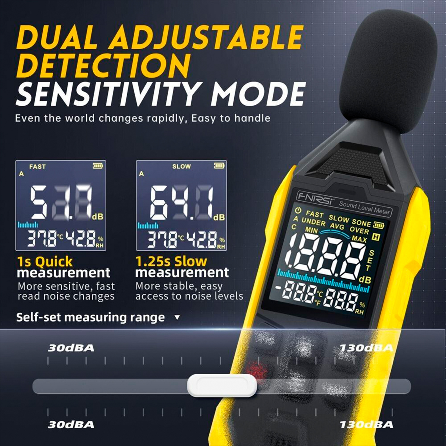 Dokładność: ±1,5dB (w oparciu o standardowe źródło dźwięku, 94dB@1KHz)