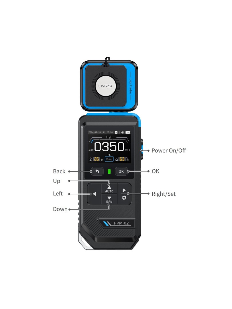 FNIRSI FP M-02 to precyzyjny luksomierz wyposażony w 2-calowy kolorowy wyświetlacz i możliwość monitorowania natężenia światła, temperatury i wilgotności. Zaprojektowany dla profesjonalistów, którzy wymagają dokładności i przejrzystości, jest idealny do oświetlenia biurowego, ogrodnictwa, laboratoriów i konfiguracji fotograficznych.