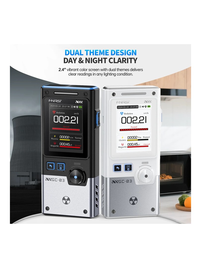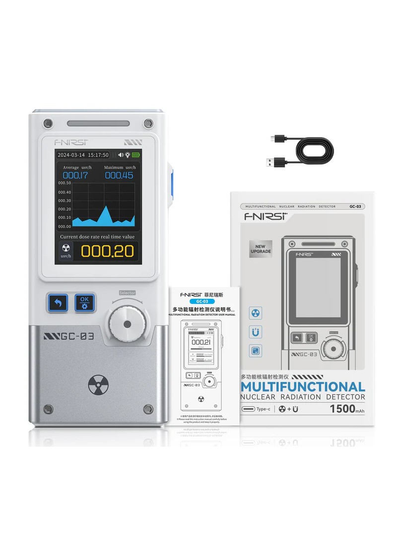 FNIRSI GC -03 to profesjonalny detektor promieniowania wyposażony w licznik Geigera-Müllera do precyzyjnego monitorowania promieniowania jądrowego i elektromagnetycznego. Wyposażony w 2,4-calowy kolorowy ekran HD i potrójny system alarmowy, dostarcza dane w czasie rzeczywistym, aby chronić użytkowników w środowiskach wysokiego ryzyka. Idealny do obiektów jądrowych, laboratoriów medycznych i badań środowiskowych, łączy w sobie wojskową dokładność z przyjazną dla użytkownika obsługą.