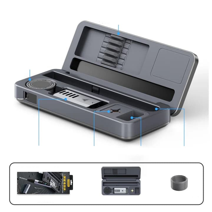 • Kompletna stacja lutownicza - Przechowuje lutownicę, groty, lutownicę i narzędzia czyszczące