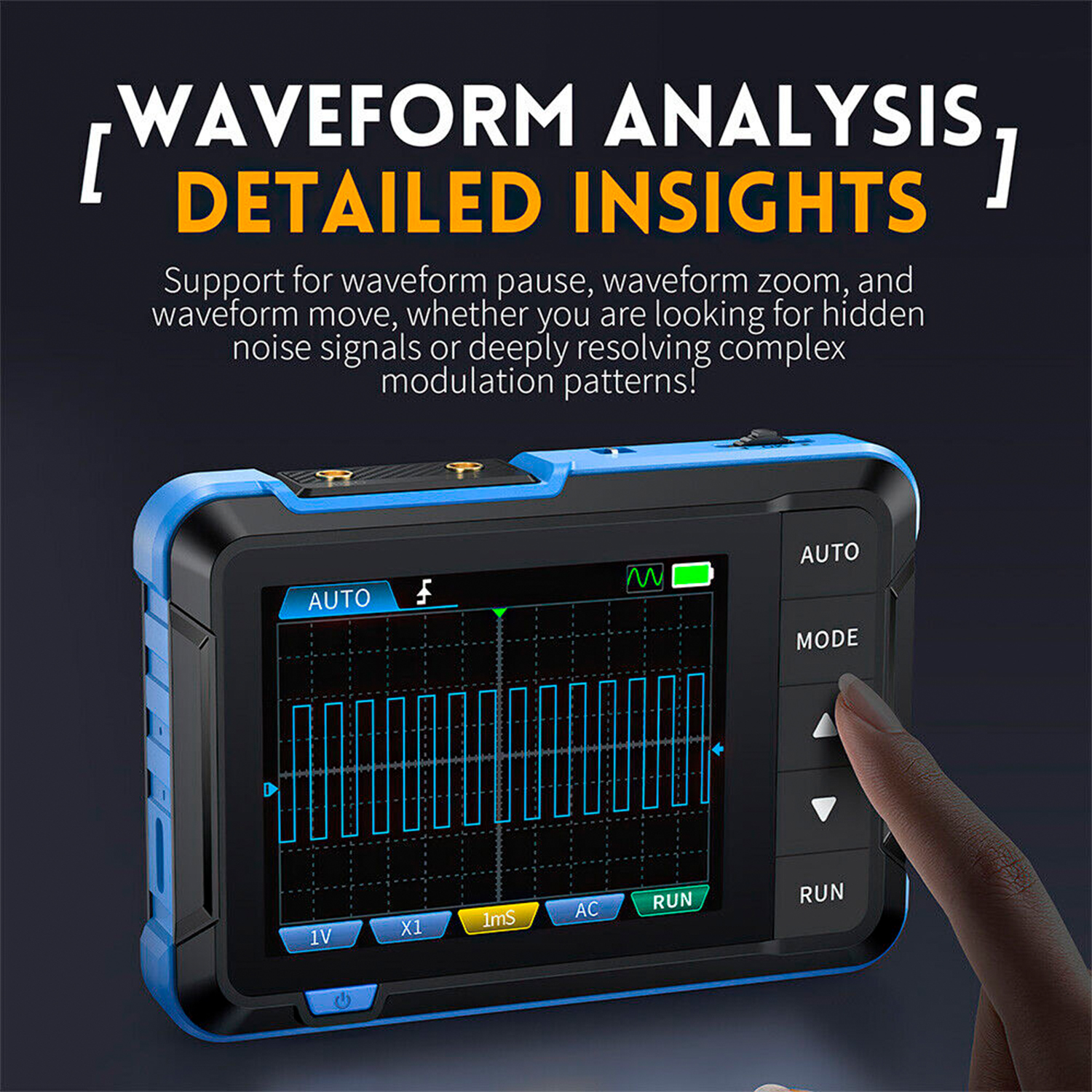 DSO-153 to bardzo praktyczny i niedrogi oscyloskop ręczny przeznaczony dla branży utrzymania ruchu i rozwoju edukacji. Oscyloskop ten charakteryzuje się częstotliwością próbkowania w czasie rzeczywistym wynoszącą 5MS/s, szerokością pasma 1MHz i kompletnymi funkcjami wyzwalania (pojedyncze, normalne, automatyczne). Może być swobodnie używany do okresowych sygnałów analogowych i nieokresowych sygnałów cyfrowych. Może mierzyć do ±400V z wydajną funkcją AUTO jednym kliknięciem, wyświetlając zmierzony przebieg bez skomplikowanych regulacji. Dodatkowo posiada generator sygnału funkcyjnego zdolny do generowania 14 rodzajów sygnałów (10KHz). Wyposażony w 2,8-calowy ekran LCD HD o rozdzielczości 320 * 240 i wbudowaną wysokiej jakości baterię litową 1000 mAh, może być używany przez około 4 godziny po pełnym naładowaniu.