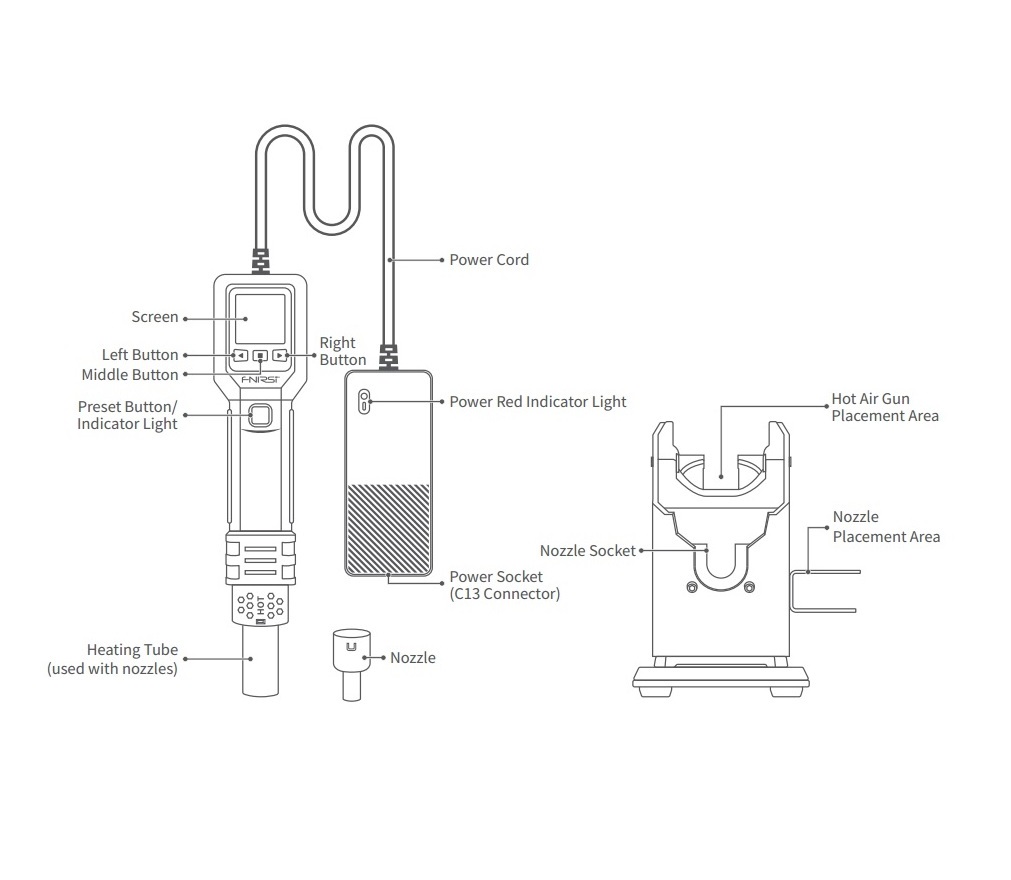 FNIRSI SAG-55 to wysokowydajna przenośna opalarka na gorące powietrze opracowana przez firmę Shenzhen FNIRSI Technology Co, Ltd.. Zaprojektowane zarówno dla profesjonalistów, jak i majsterkowiczów, to inteligentne narzędzie charakteryzuje się szybkim nagrzewaniem, precyzyjną kontrolą temperatury i wyjątkową przenośnością. Ergonomiczna konstrukcja, automatyzacja skoncentrowana na bezpieczeństwie i inteligentne funkcje sprawiają, że idealnie nadaje się do szerokiego zakresu zastosowań związanych z lutowaniem, rozlutowywaniem i obkurczaniem termicznym.