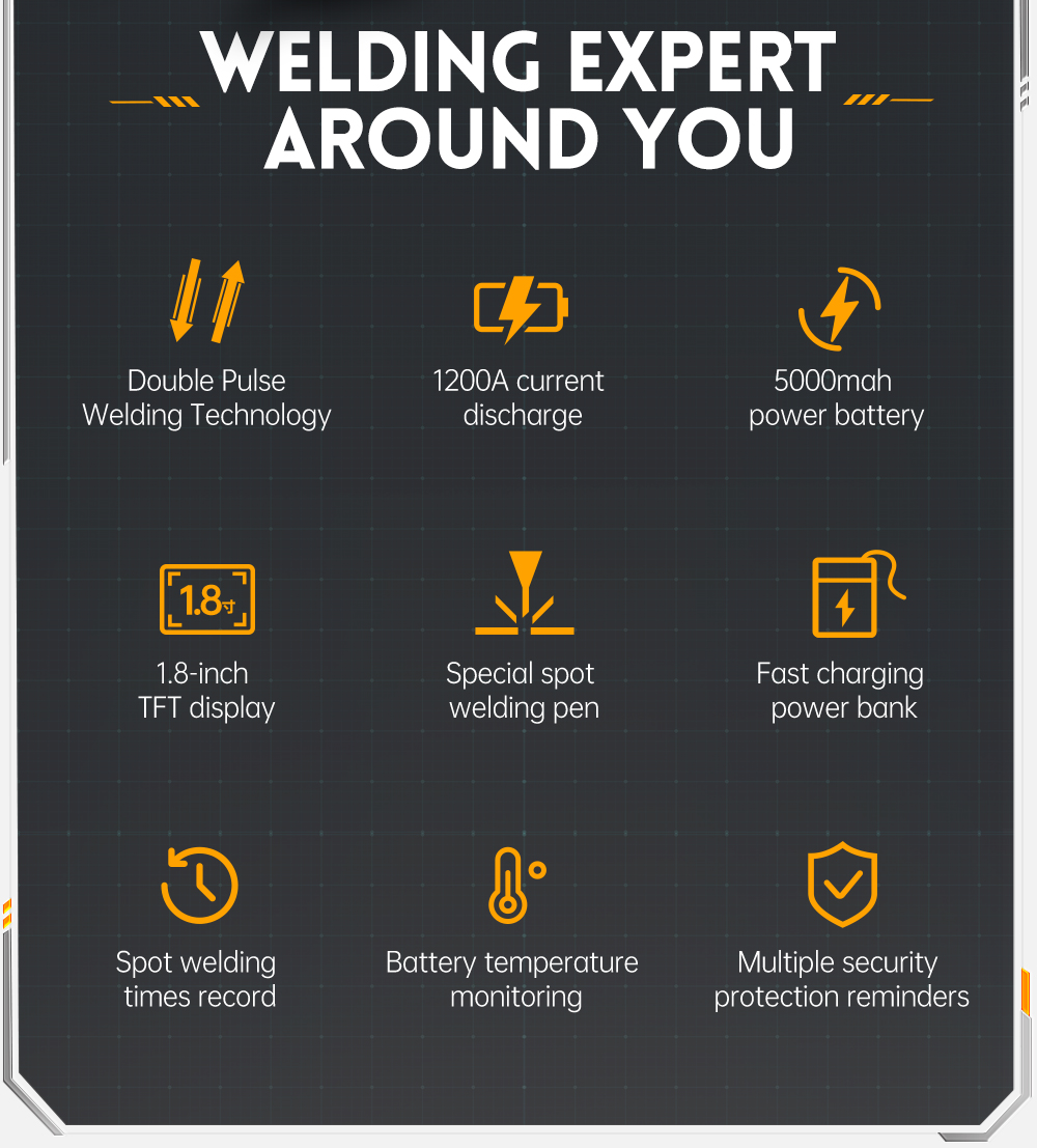 • Technologia zgrzewania punktowego z podwójnym impulsem zapewnia stabilne i mocne zgrzewanie