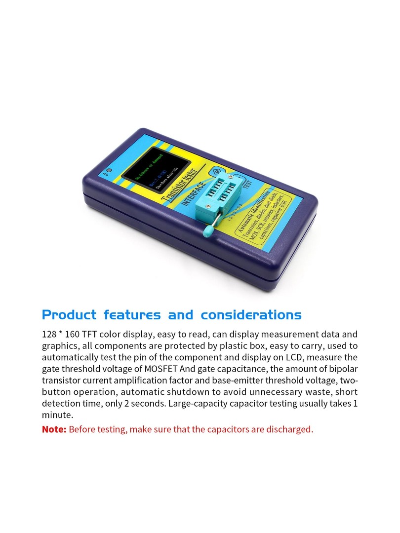 • Typ: 1,8-calowy kolorowy wyświetlacz TFT LCD zapewniający wyraźne i szczegółowe odczyty komponentów.