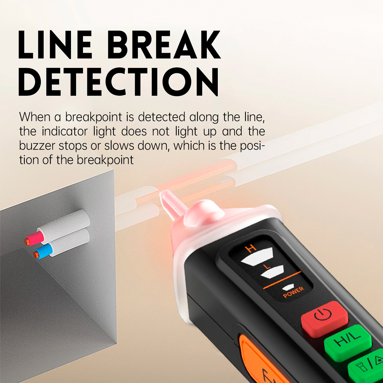 • Przełącznik czułości: niska (12 V do 1000 V) lub wysoka (48 V do 1000 V)