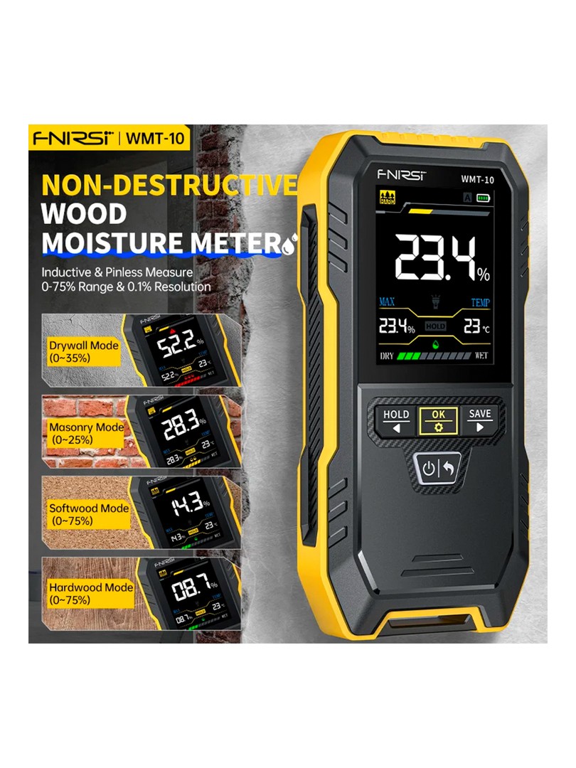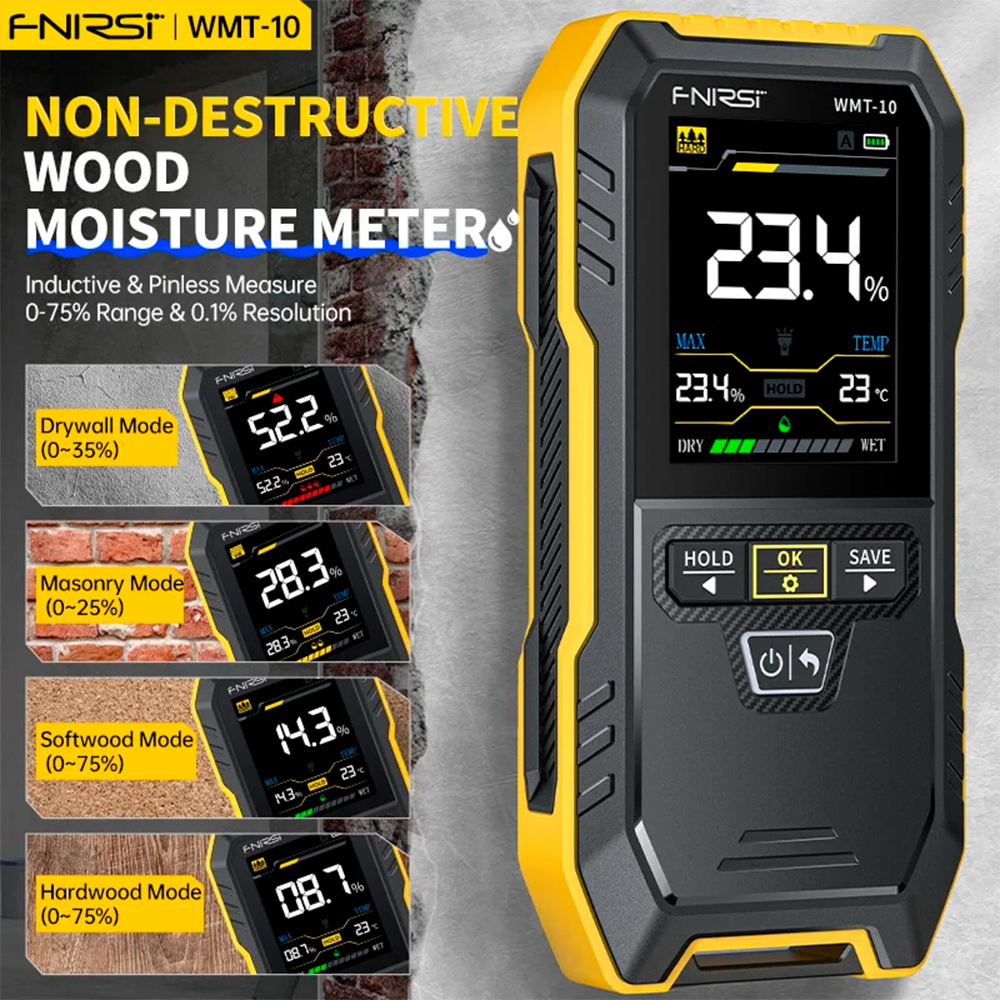 FNIRSI WMT-10 Indukcyjny miernik wilgotności drewna Higrometr Bezkontaktowy wykrywacz wilgotności drewna Nieniszczący tester wilgotności.