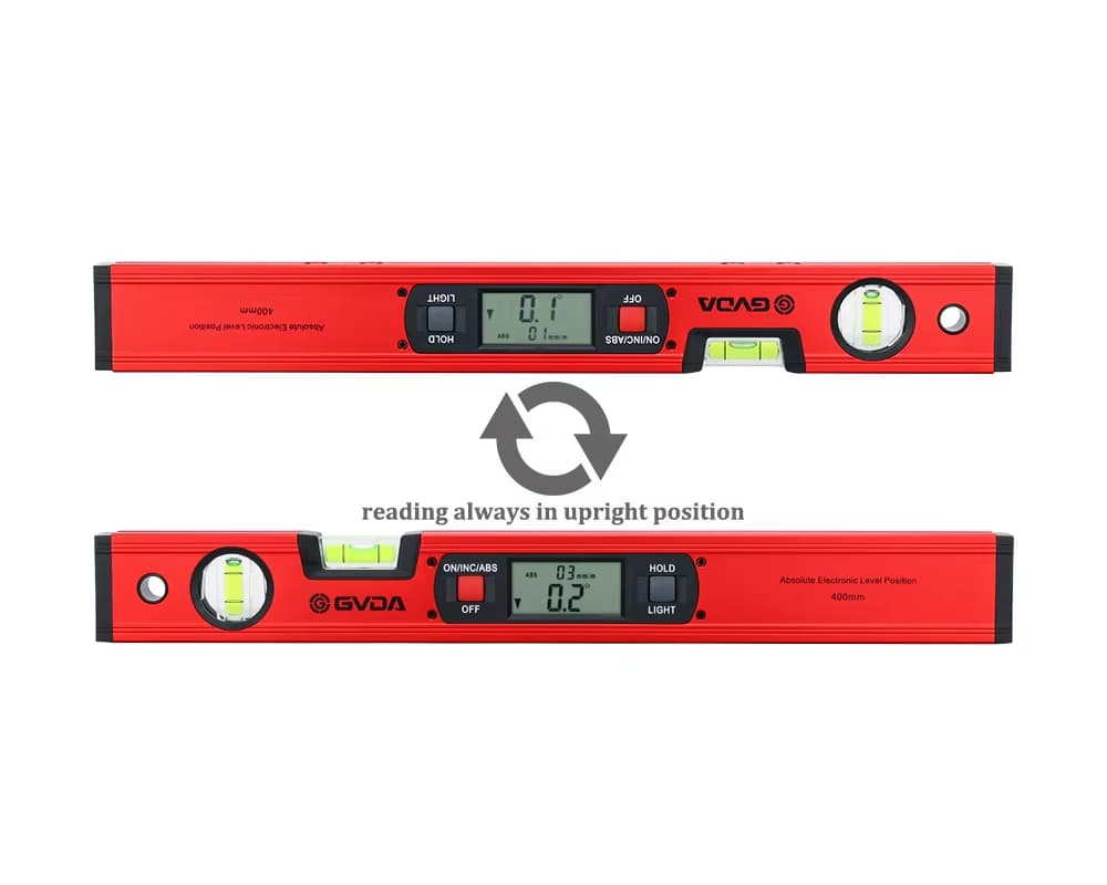 Poziomica cyfrowa GVDA GD-H400M / GD-Y400M łączy w sobie precyzję, trwałość i łatwość obsługi, dzięki czemu jest niezbędnym narzędziem dla profesjonalistów poszukujących niezawodnej wydajności i wysokiej jakości wyników.