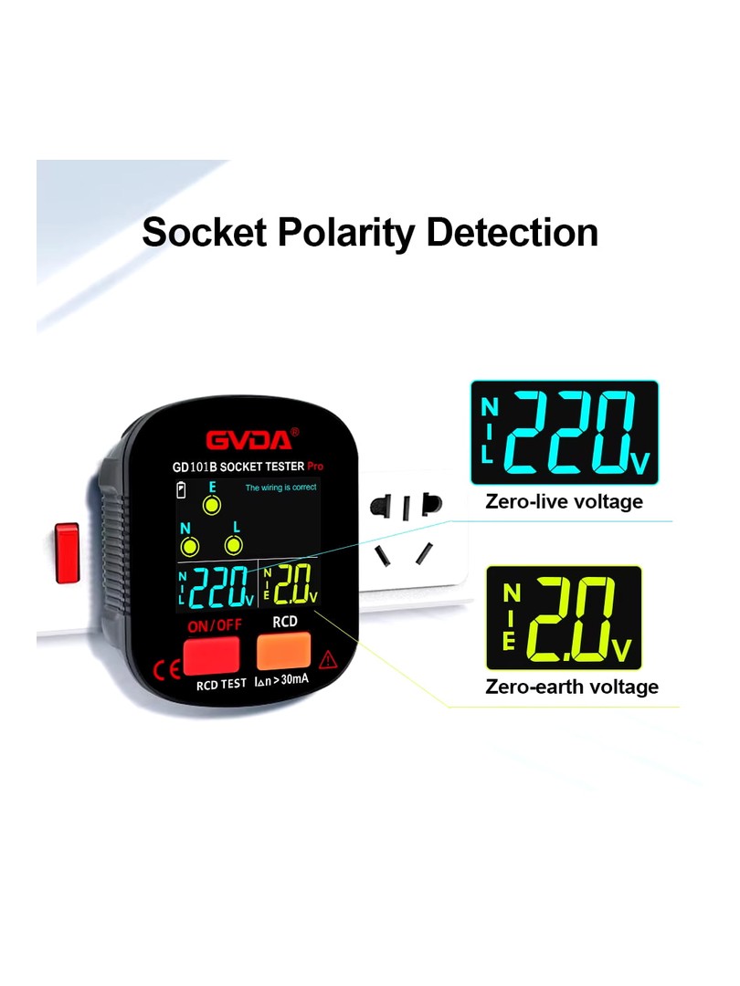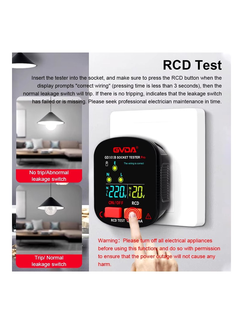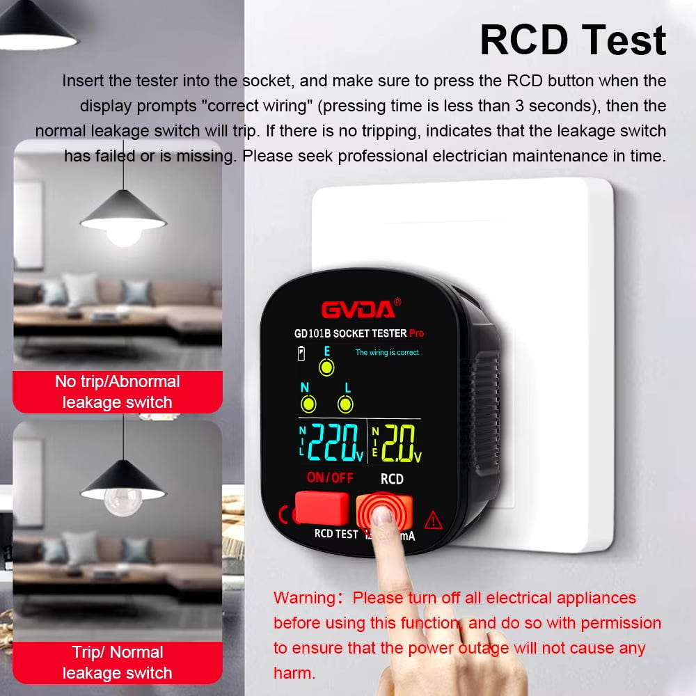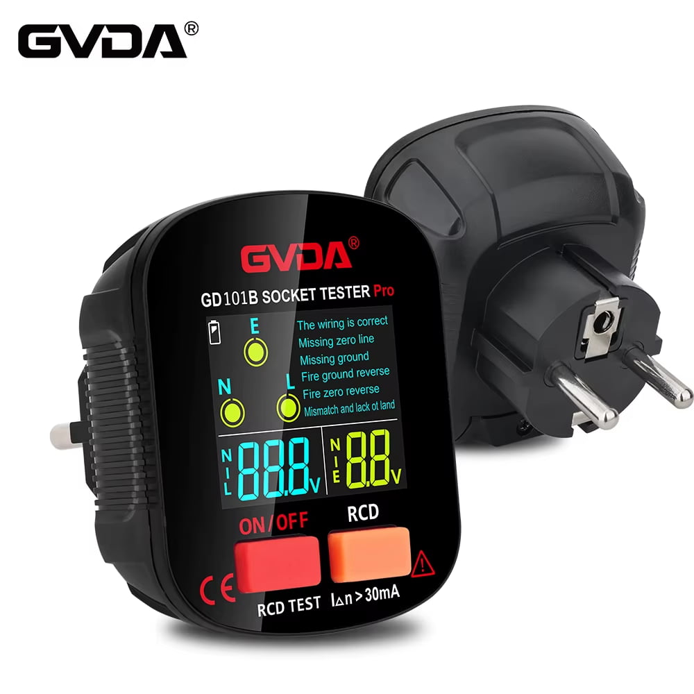 Zapewnij bezpieczeństwo elektryczne dzięki inteligentnemu testerowi gniazd GVDA GD101B - niezawodnemu narzędziu do kontroli gniazd i testowania zabezpieczeń upływowych.
