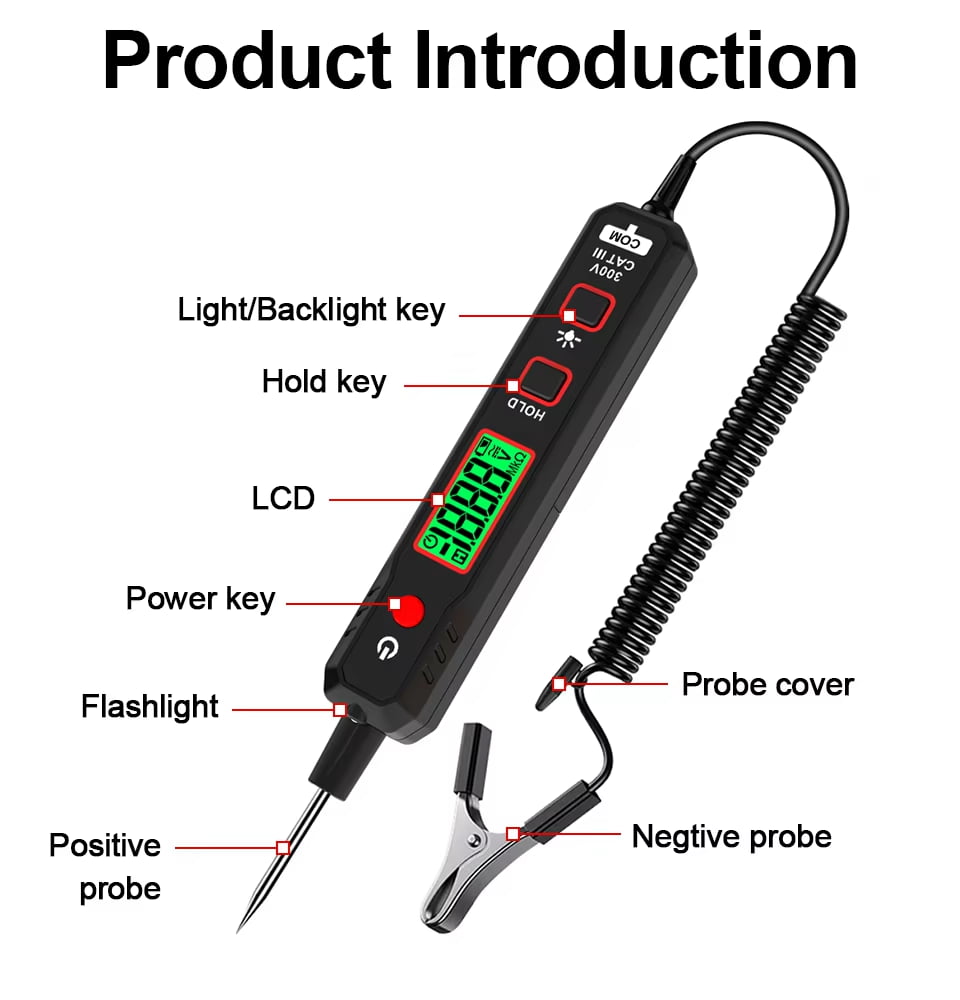 GVDA GD181 Samochodowy tester napięcia typu pióro to kompaktowe i wszechstronne narzędzie diagnostyczne przeznaczone do konserwacji i testowania obwodów samochodowych. Ten inteligentny detektor napięcia DC ułatwia rozwiązywanie problemów z elektryką samochodową z precyzją i wygodą.