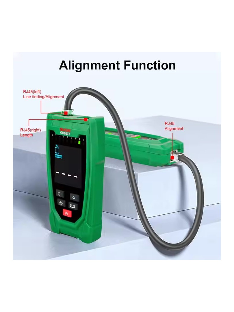 Wielofunkcyjny tester kabli sieciowych GVDA GD603 to ręczne urządzenie wyposażone w zaawansowane funkcje śledzenia kabli, lokalizacji uszkodzeń i pomiaru długości. Zaprojektowany dla inżynierów telekomunikacji, specjalistów od okablowania i personelu zajmującego się konserwacją sieci, to narzędzie jest niezbędne do skutecznego rozwiązywania problemów z siecią.