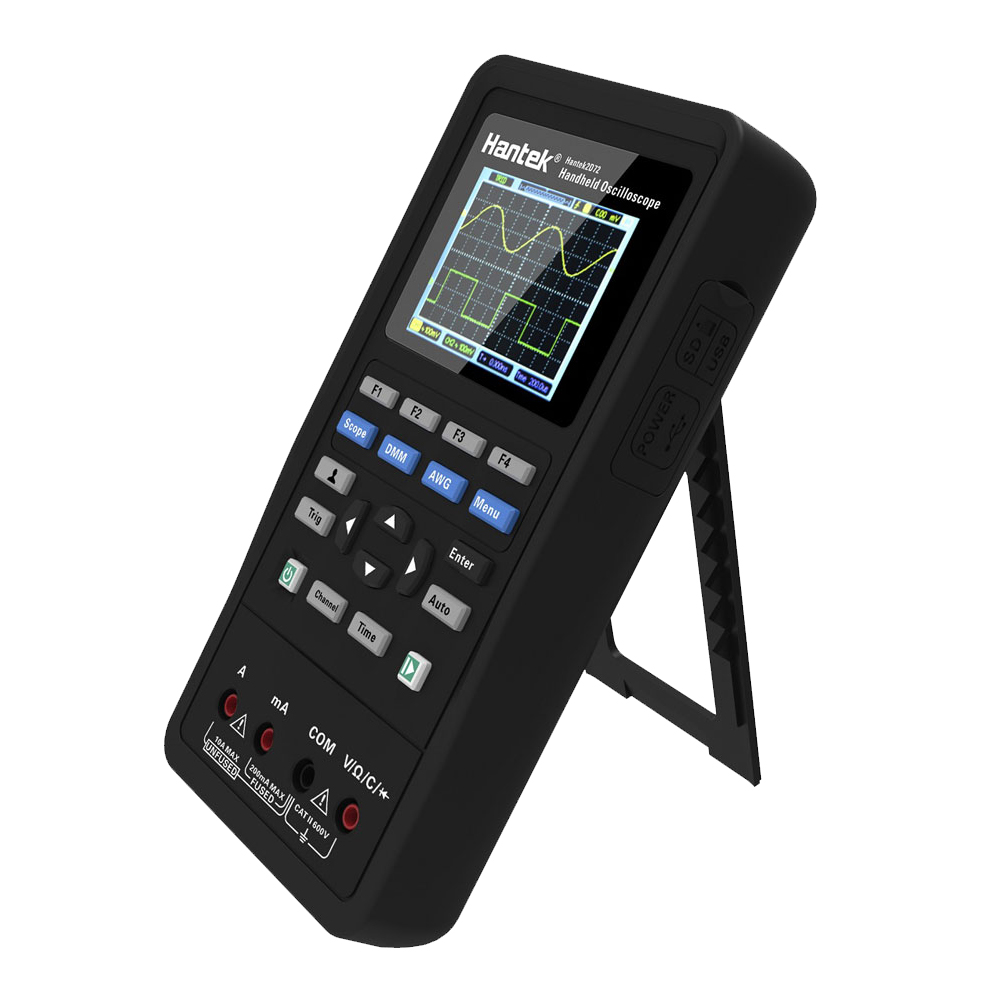 Seria Hantek2000 to całkowicie nowy ręczny oscyloskop, który łączy w sobie funkcjonalność oscyloskopu,generatora przebiegów i multimetru w kompaktowej i lekkiej konstrukcji. Dzięki zaawansowanym funkcjom, bardzo niskiemu zużyciu energii i intuicyjnemu interfejsowi, seria ta jest niezbędnym narzędziem dla inżynierów i techników. Ergonomiczna i przenośna konstrukcja zapewnia łatwość użytkowania, a wbudowany system wymiennych baterii litowych zapewnia długotrwałą pracę.