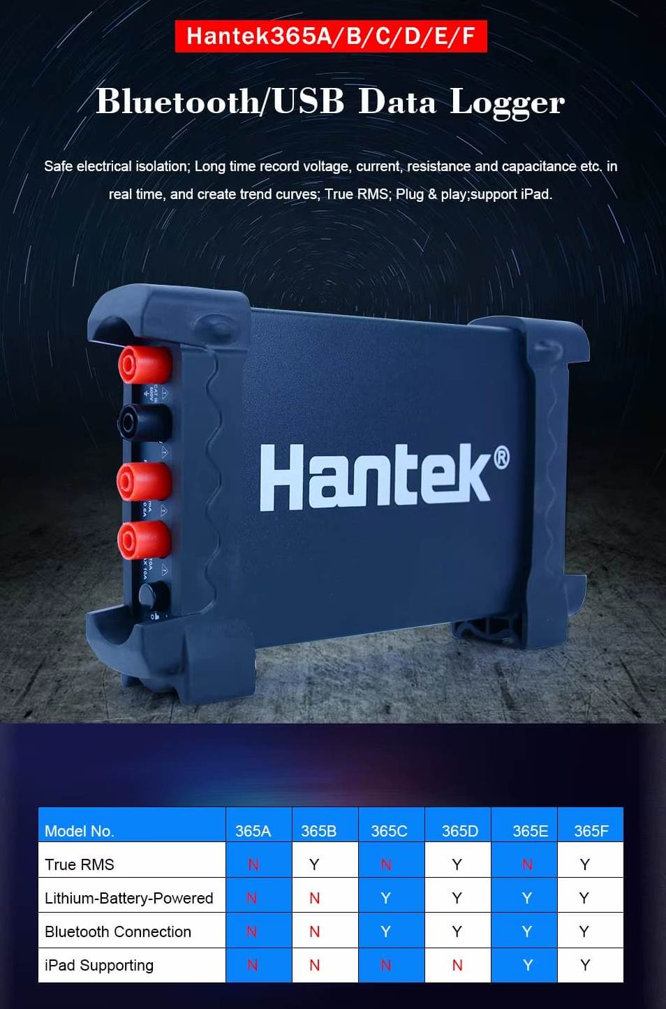 Hantek 365E Digital Multimeter - Bluetooth/USB Data Logger
