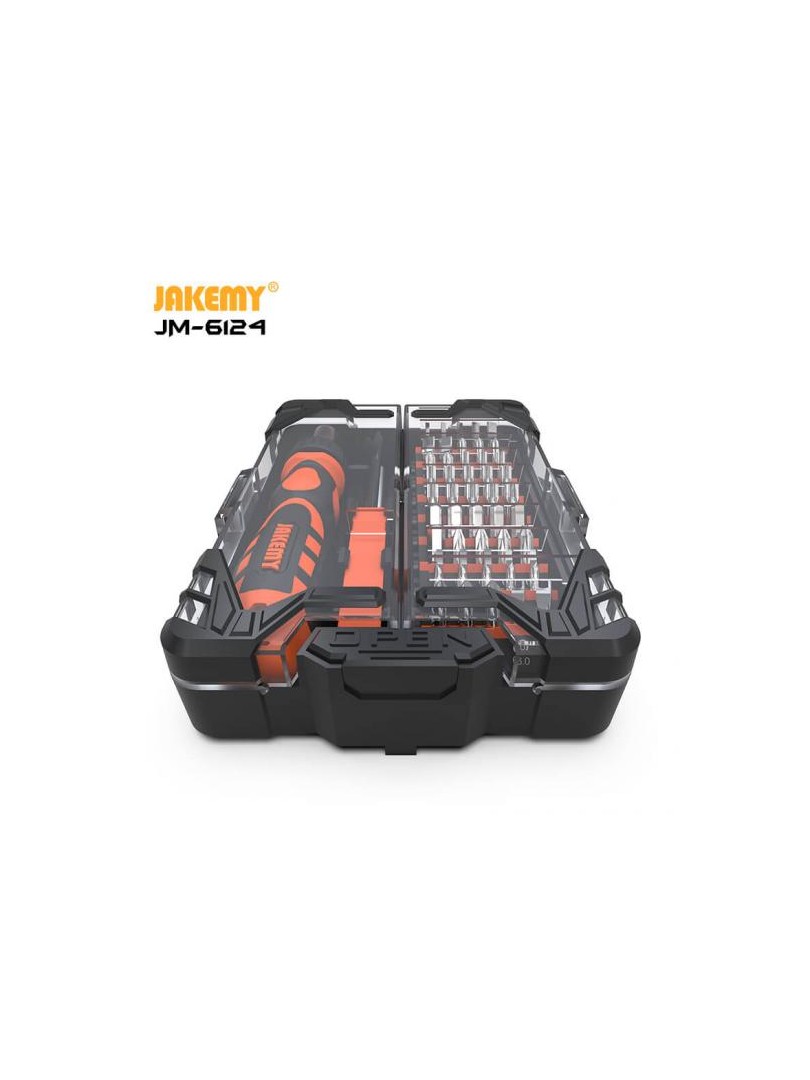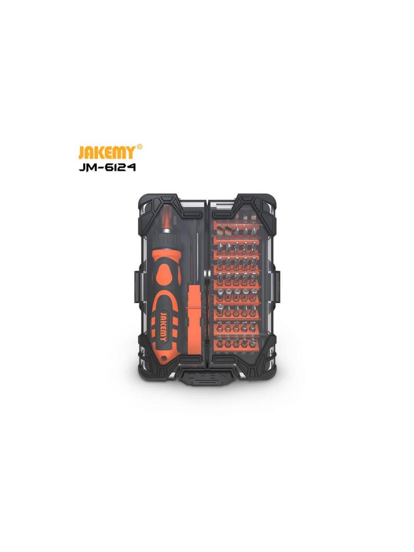 JAKEMY J M-6124 to zestaw wkrętaków 48 w 1 przeznaczony do otwierania obudów sprzętu elektronicznego oraz do ogólnych prac naprawczych, instalacyjnych i renowacyjnych.