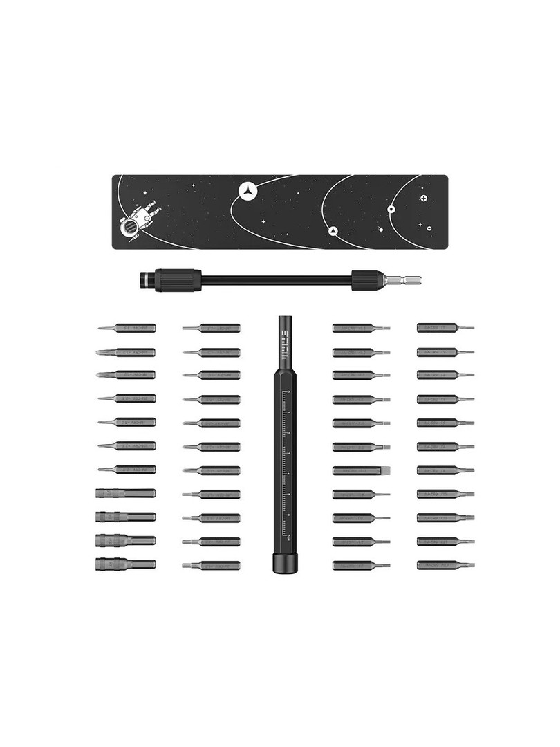 Zestaw łączy w sobie uchwyt sterownika, precyzyjne bity i akcesoria pomocnicze w przenośnym formacie do przechowywania dla techników, warsztatów i majsterkowiczów.