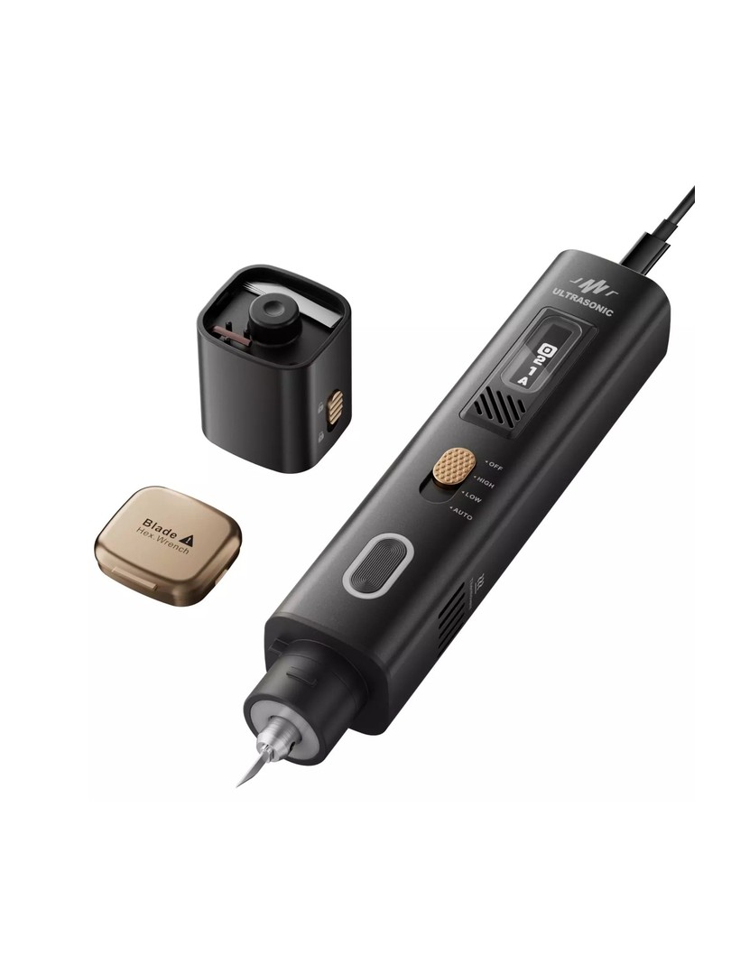 Jakemy J M-Y10 Pro to ręczna ultradźwiękowa przecinarka i polerka o mocy 35 W i częstotliwości 40 kHz, zaprojektowana do szybkiego i wydajnego cięcia, szlifowania i polerowania. Oparta na tej samej platformie ultradźwiękowej co JM-Y10, wersja Pro dodaje rozszerzony zestaw ostrzy i magnetyczną podkładkę do przechowywania, dzięki czemu nadaje się do bardziej wymagających zastosowań wymagających precyzji i detali.