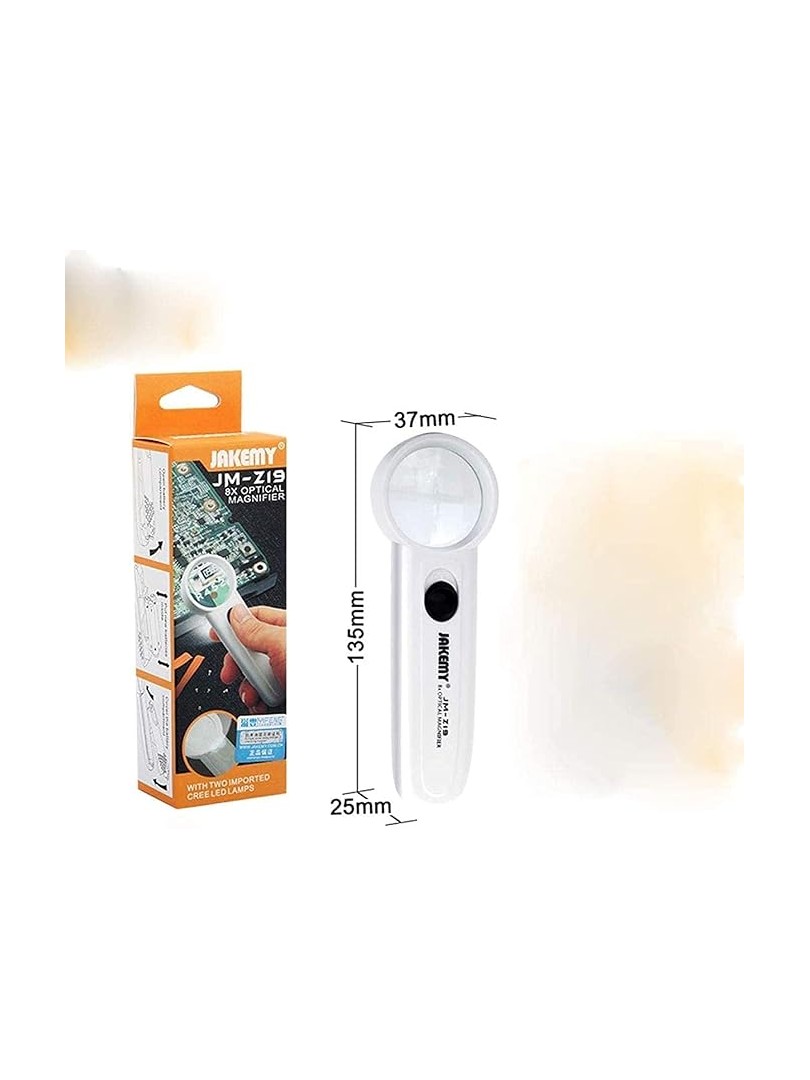Lupa optyczna JAKEMY J M-Z19 to przenośna lupa z oświetleniem LED do wyraźniejszego oglądania szczegółów.