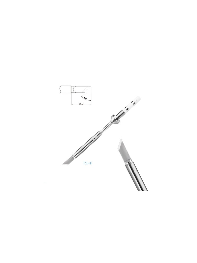 MINIWARE grot TS-KU do lutownicy TS100/TS101Wykonany ze stali nierdzewnej.Grot lutowniczy posiada wewnętrzny termiczny ceramiczny rdzeń grzewczy, a dzięki przewodzeniu ciepła przez czystą miedź może szybko przenosić ciepło do końcówki grotu lutowniczego, osiągając doskonałą kontrolę temperatury i długą żywotność.