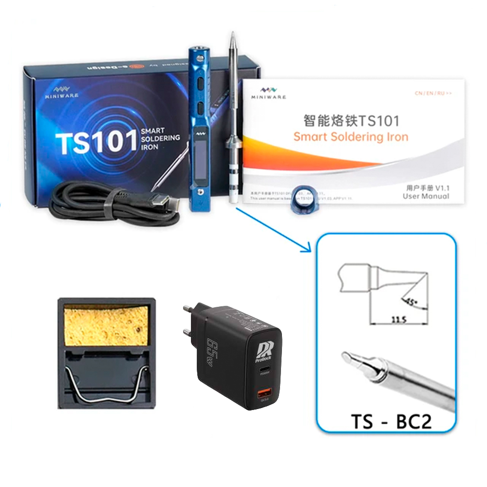 Miniware lutownica TS101 (BC2) niebieska + 65W Zasilacz + podstawka T-Stand