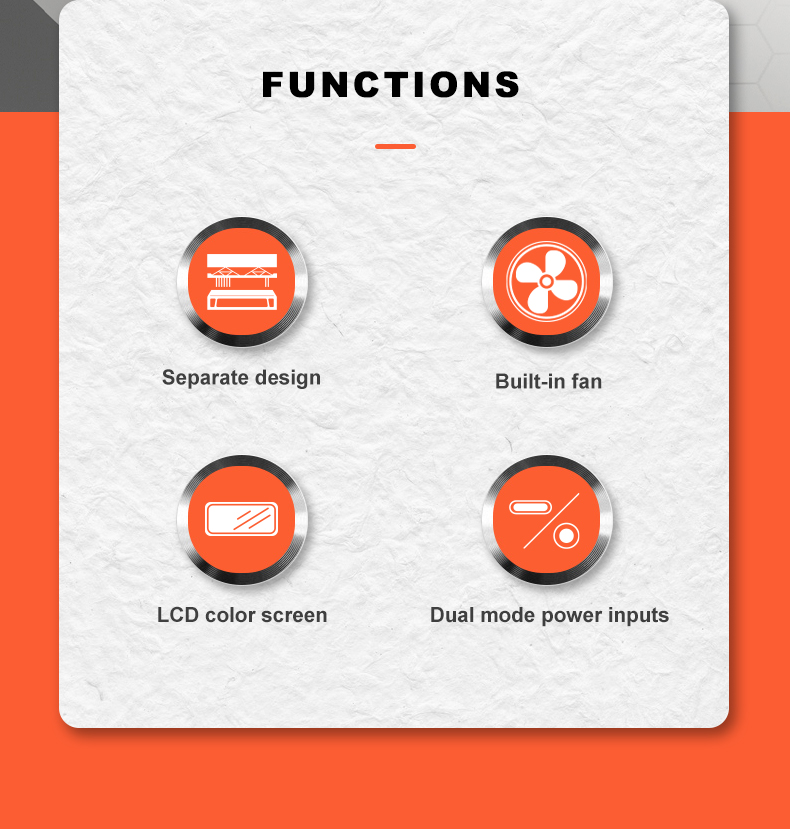 • Wbudowany szybki wentylator chłodzący, który automatycznie wykrywa temperaturę kontrolera, inteligentnie dostosowuje prędkość wentylatora i przyspiesza rozpraszanie ciepła;