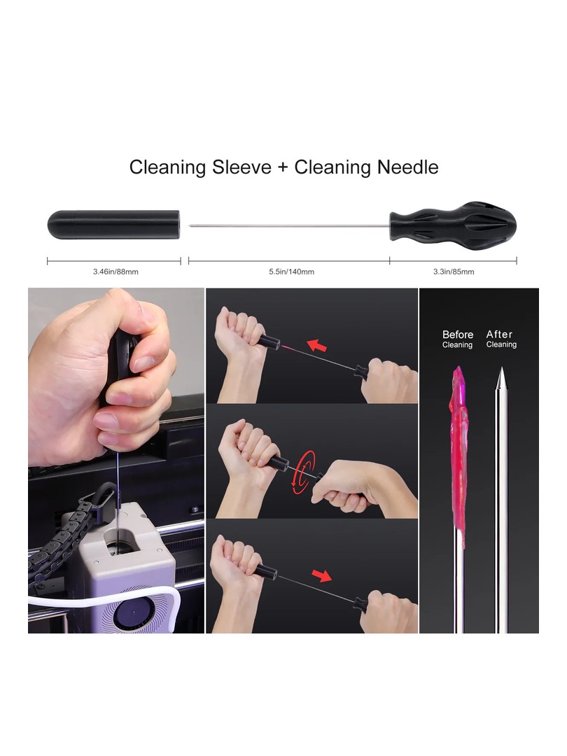 Zestaw do czyszczenia dy sz drukarki 3D to praktyczne rozwiązanie konserwacyjne zaprojektowane do szybkiego i bezpiecznego usuwaniazatorów dysz i pozostałości filamentu z drukarek 3D FDM/FFF. Pomaga przywrócić stały przepływ filamentu, zmniejszyć liczbę nieudanych wydruków i wydłużyć żywotność dysz i hotendów.
