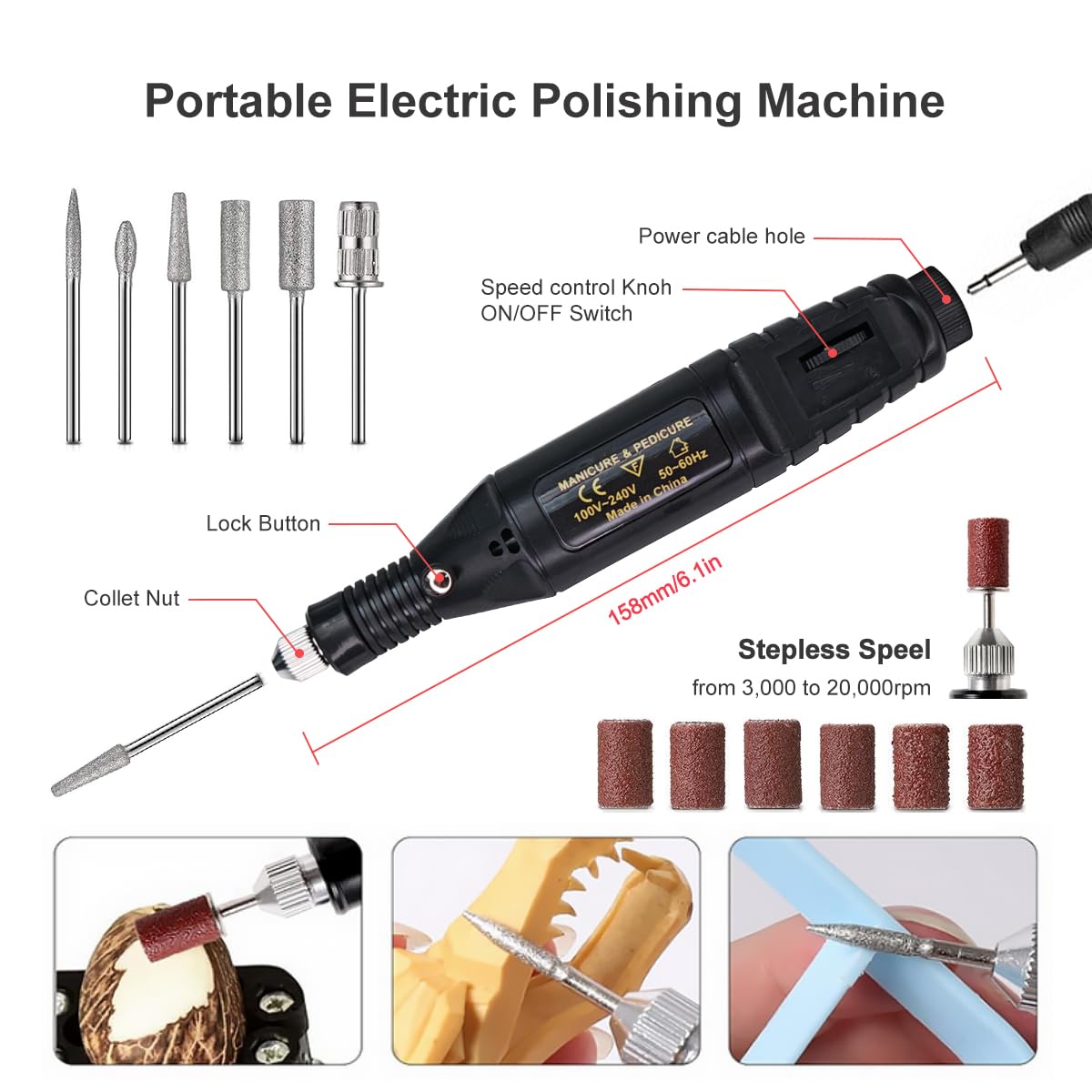 • Polerka: 5000-25000 RPM z osłoną bezpieczeństwa