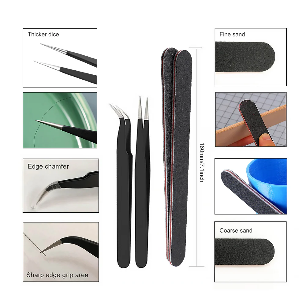 Ten 42-częściowy profesjonalny zestaw zapewnia wszystkie narzędzia potrzebne do przekształcania wydruków 3D z surowych prototypów w gotowe produkty o jakości wystawowej. Zestaw zawiera zarówno przyrządy pomiarowe, jak i narzędzia do wykańczania, tworząc kompletne rozwiązanie do obróbki końcowej.