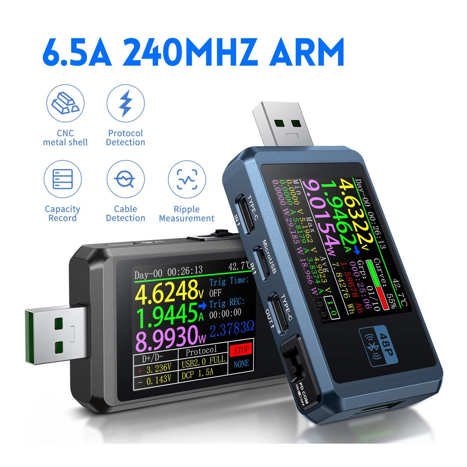 Tester USB FNIRSI FNB48P to wszechstronne i bardzo dokładne narzędzie zaprojektowane do pomiaru napięcia, prądu, mocy i innych krytycznych parametrów urządzeń zasilanych przez USB. Ten kompaktowy i łatwy w użyciu tester jest idealny do diagnozowania problemów z ładowaniem, testowania kabli oraz oceny wydajności zasilaczy i ładowarek. Posiada intuicyjny wyświetlacz z monitorowaniem w czasie rzeczywistym i nadaje się do użytku z szeroką gamą urządzeń USB.