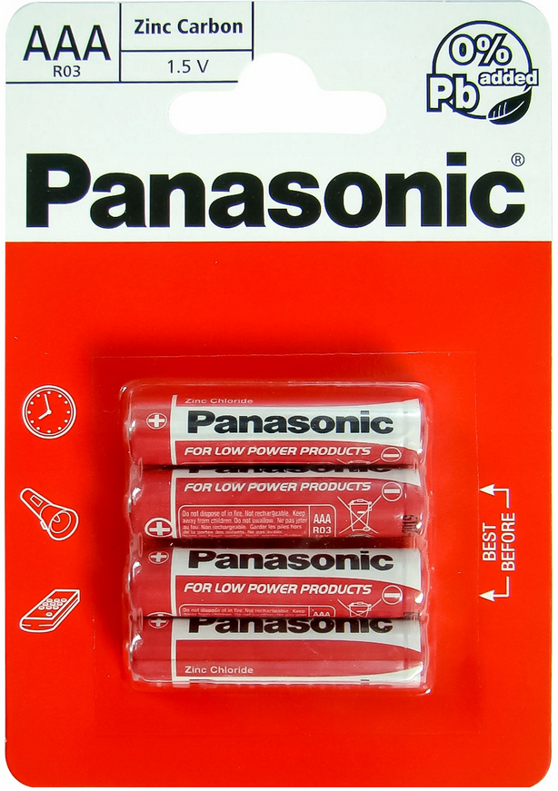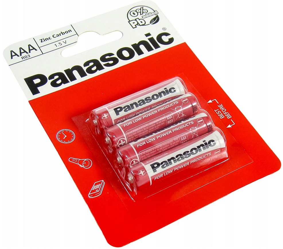 • 4 × Baterie cynkowo-węglowe Panasonic R3 AAA