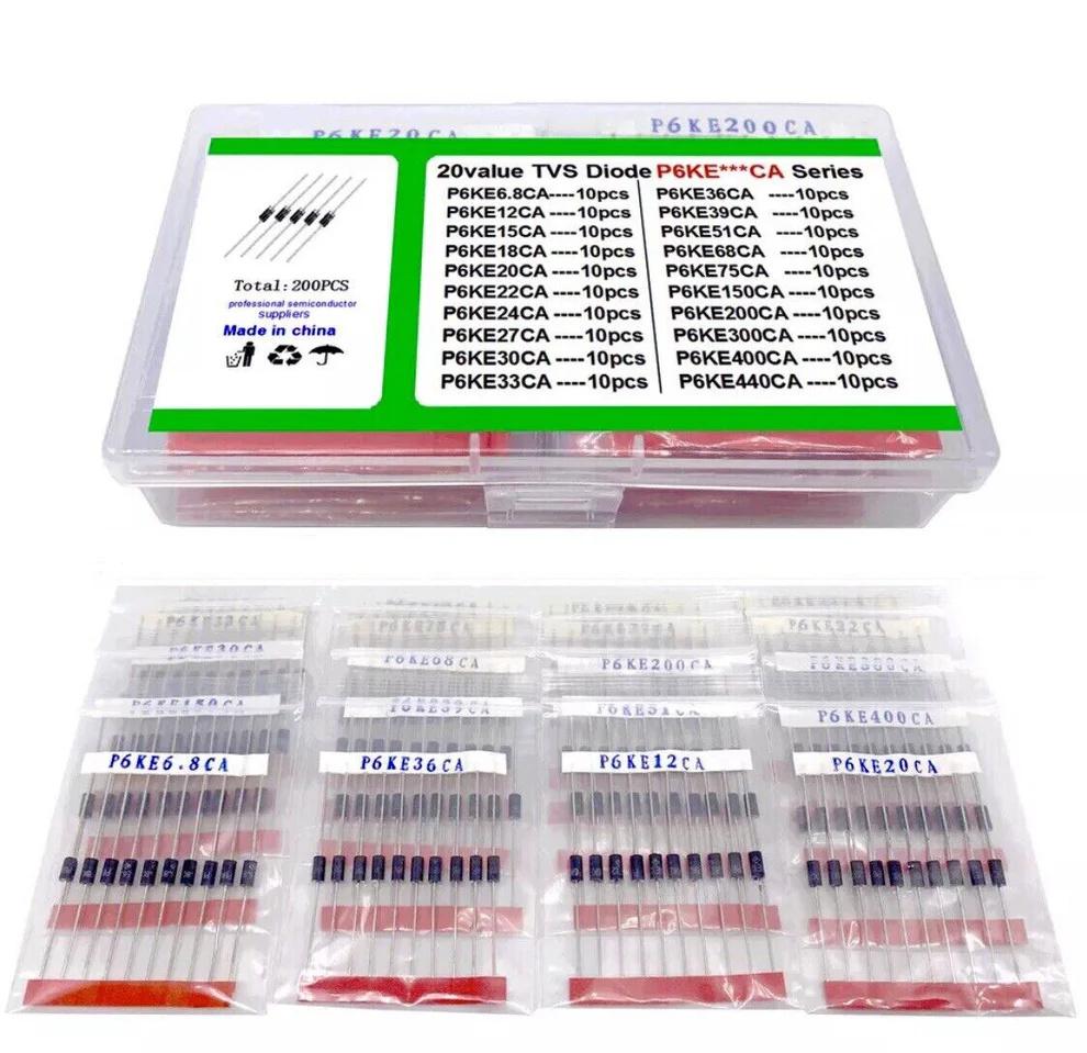 ProRock 200PCS TVS Transient Suppressor Clamp Type P6KE Diode Kit