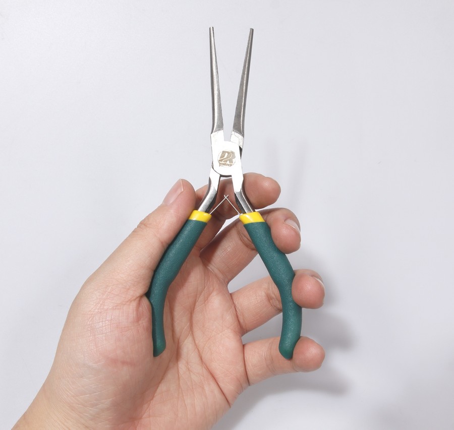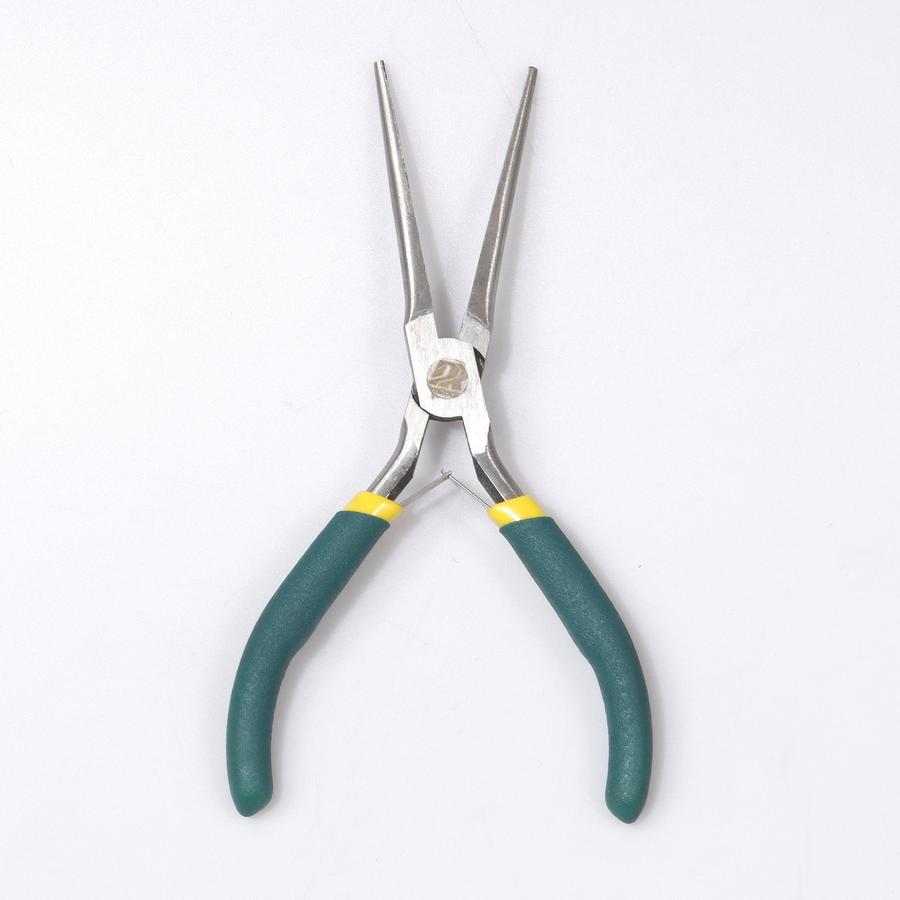 Precyzyjne szczypce z długim noskiem wykonane ze stali 45 z wygodnymi uchwytami z PP w profesjonalnym zielonym wykończeniu.
