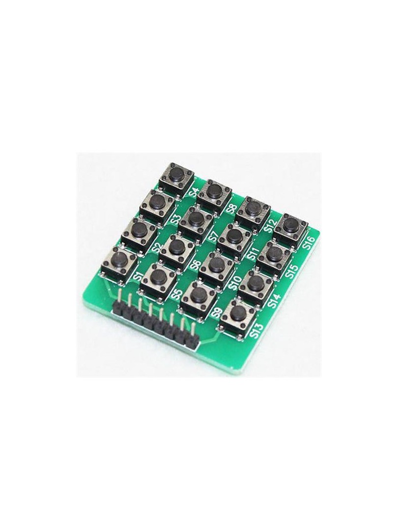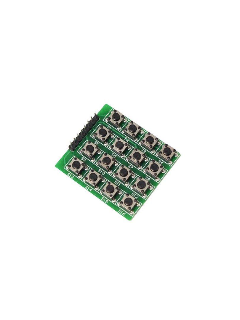 ProRock 4×4 Matrix Keypad to kompaktowy moduł klawiatury z szesnastu przyciskami taktowymi ułożonymi w układ matrycowy cztery na cztery. Przeznaczony do współpracy z mikrokontrolerami, wykorzystuje technikę skanowania macierzowego do wykrywania wciśniętego przycisku przy użyciu minimalnej liczby linii wejścia-wyjścia.