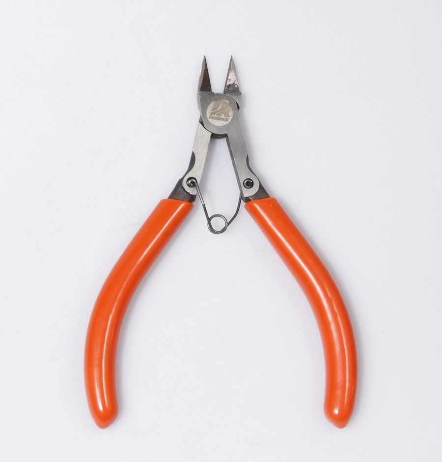 Precyzyjne szczypce wykonane ze stali manganowej 65# z wygodnymi uchwytami z PVC w żywym pomarańczowym kolorze.