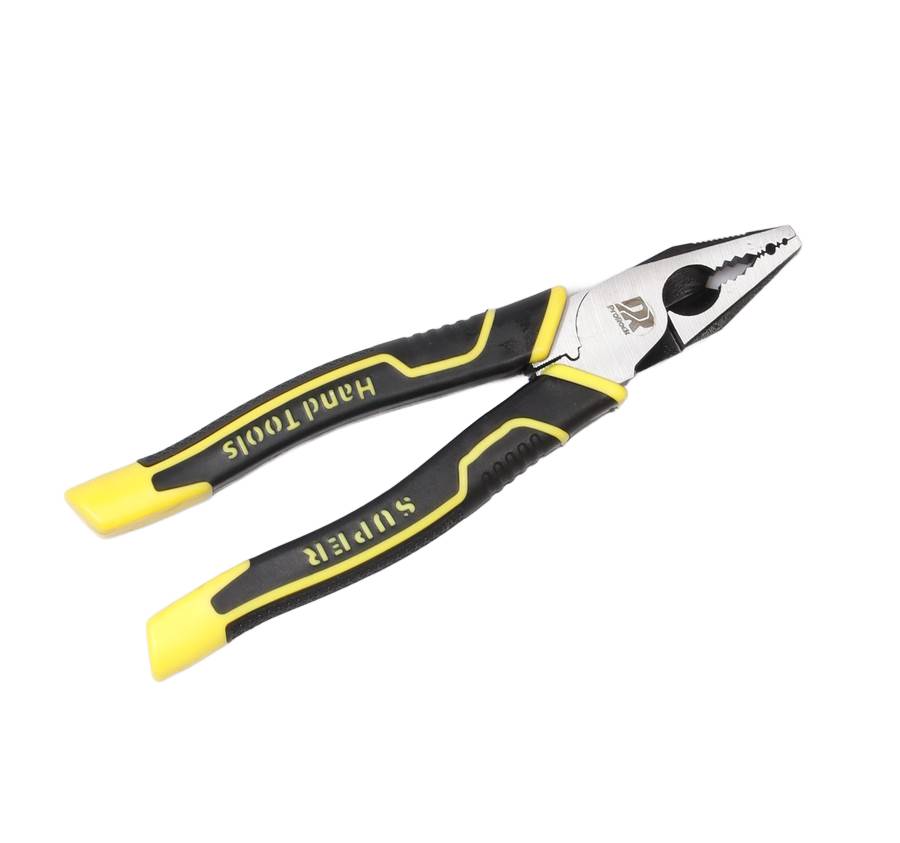 Profesjonalne szczypce dla monterów wykonane ze stali 55 z ergonomicznymi rękojeściami z kompozytu PP+TPR w kolorze czarno-żółtym.