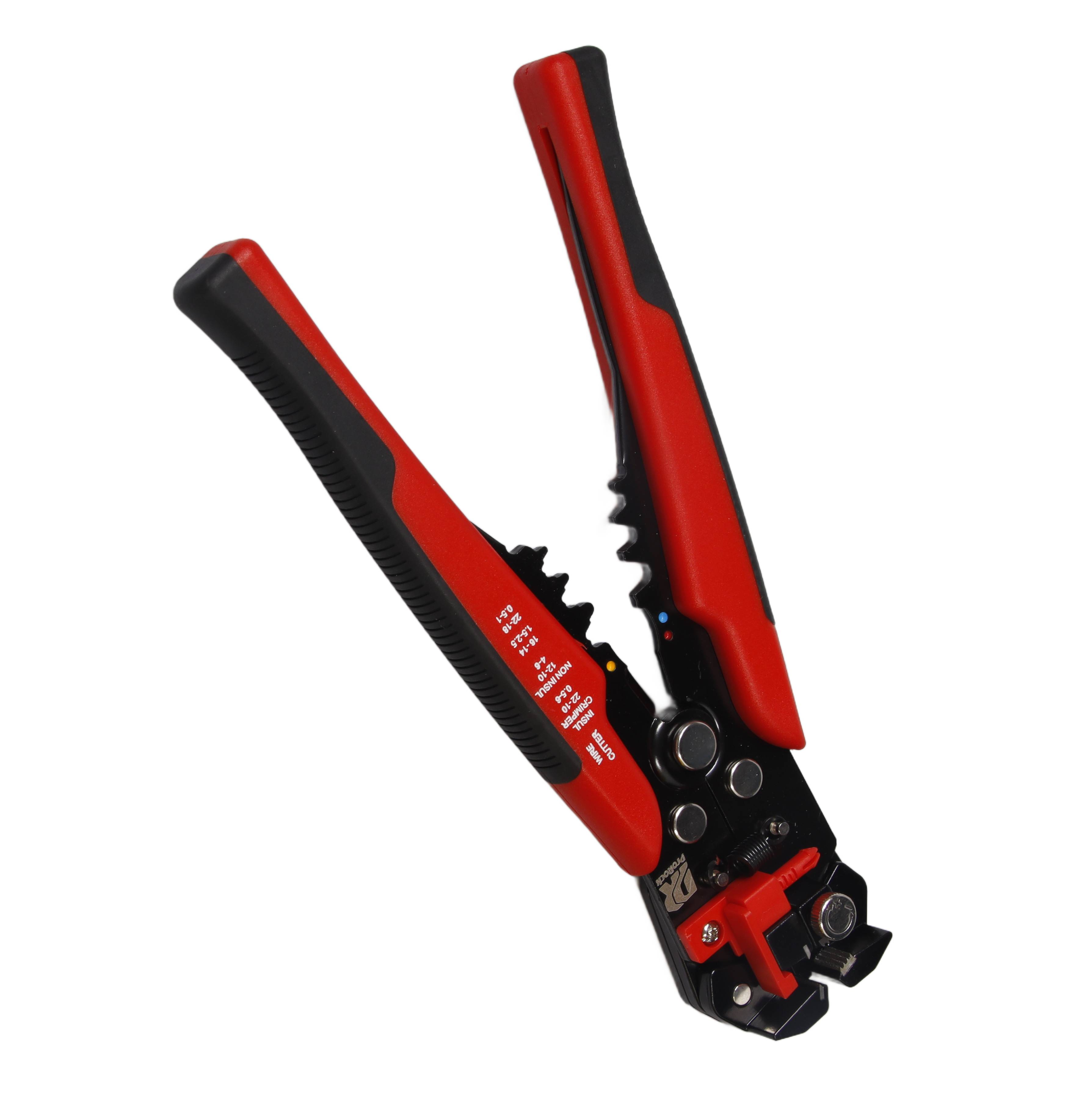 Profesjonalne, wielofunkcyjne narzędzie do ściągania izolacji z przewodów z regulacją siły ściągania izolacji i automatyczną obsługą. Głowica wykonana ze stopu cynku i ergonomiczna rękojeść z dwóch materiałów zapewniają najwyższy komfort i precyzję.