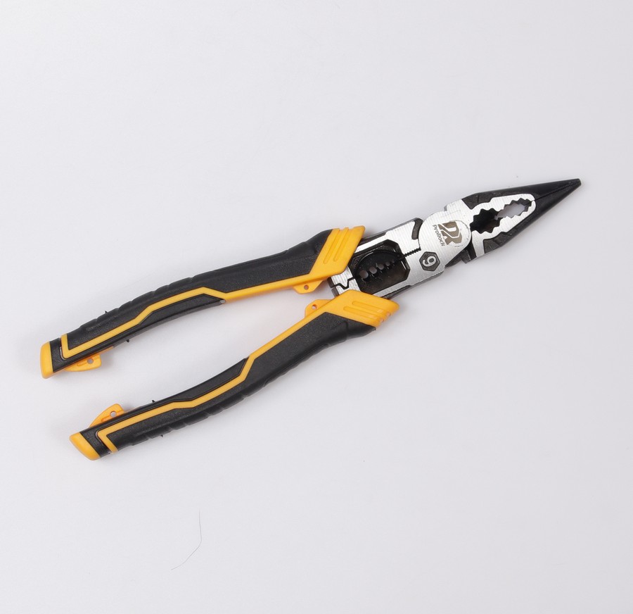 Profesjonalne szczypce półokrągłe wykonane ze stali 55# z wygodnymi rękojeściami z PVC, w czarno-żółtym kolorze dla lepszej widoczności.