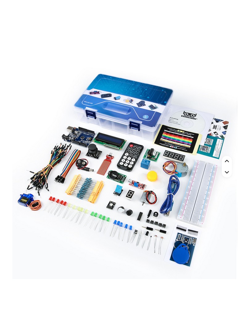 Zestaw startowy ProRock Development Board to zestaw komponentów edukacyjne przeznaczone dla początkujących oraz hobbystów pragnących poznać podstawy elektroniki i programowania w środowisku Arduino IDE. W skład zestawu wchodzą kontroler oparty na mikrokontrolerze ATmega328P, szeroki wybór czujników, modułów wykonawczych oraz elementy pasywne umożliwiające budowę interaktywnych projektów. Zestaw wspiera naukę metodą prób i błędów dzięki dużej liczbie komponentów oraz dokumentacji z przykładami graficznymi.