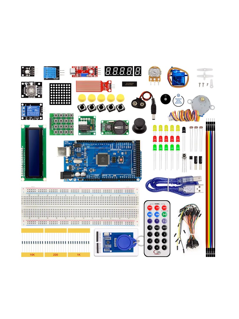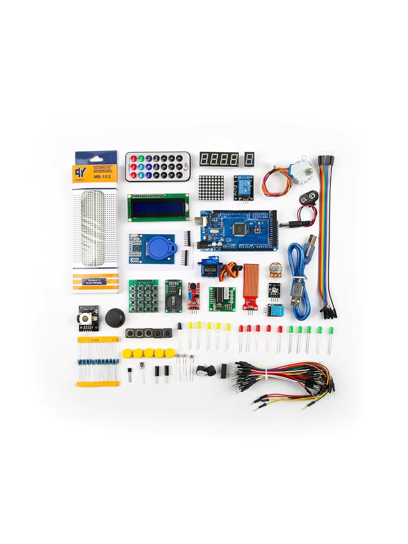 Zestaw startowy ProRock Mega 2560 to gotowy pakiet do nauki programowania mikrokontrolerów, prototypowania projektów elektronicznych oraz budowy robotów. W skład zestawu wchodzi kontroler kompatybilny z Mega 2560 oferujący rozszerzoną liczbę wyprowadzeń wejścia-wyjścia, co umożliwia realizację bardziej złożonych projektów wymagających jednoczesnego sterowania wieloma modułami. Zestaw zawiera czujniki, wyświetlacze, silniki, moduły sterowników oraz podstawowe komponenty elektroniczne niezbędne do tworzenia projektów od poziomu podstawowego do zaawansowanego.